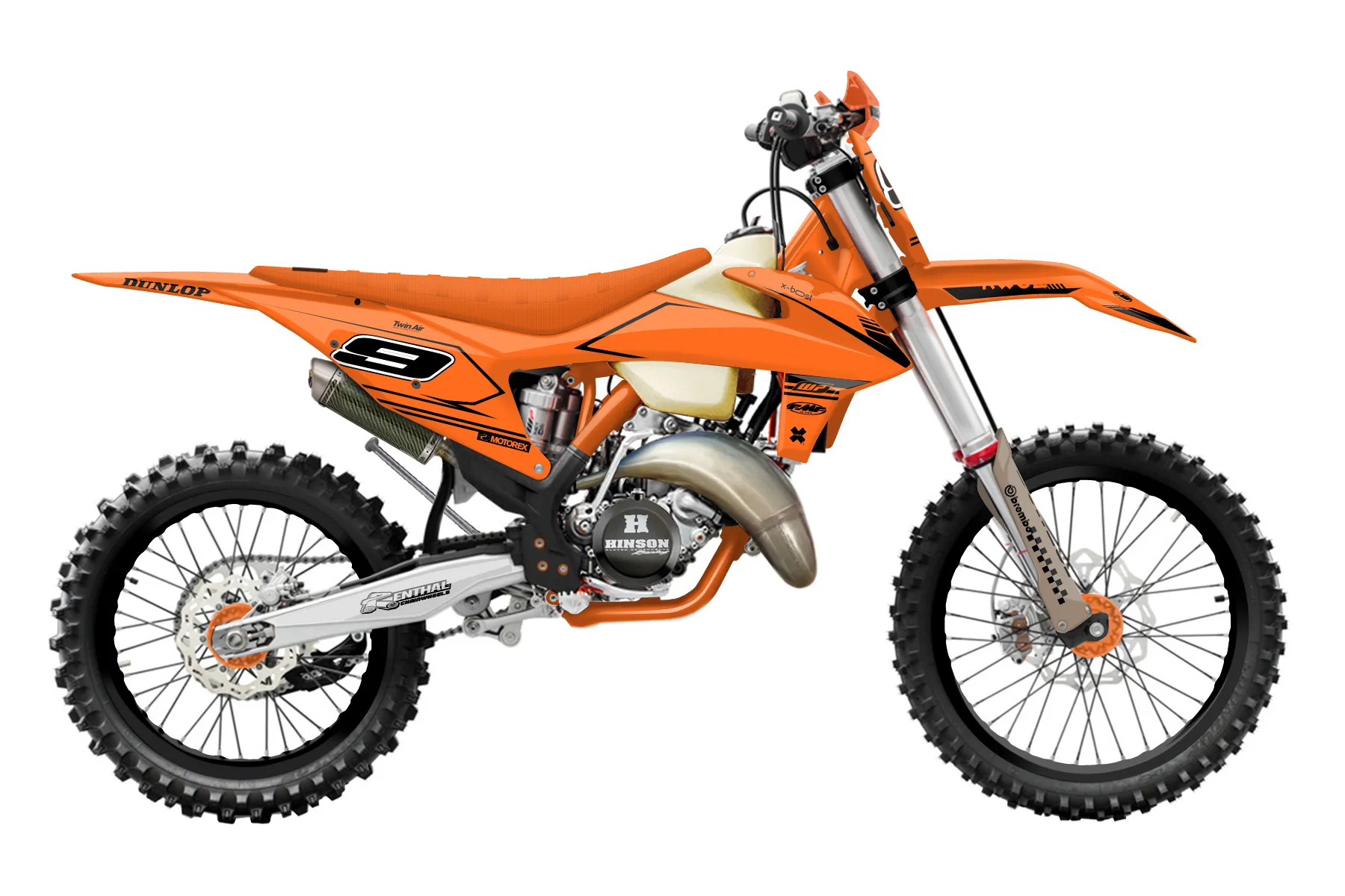 «Absolute» — готовый комплект графики серии Untucked для KTM Offroad Graphic Kit KTM XC 125 2019. В комплекте: графика на бак и боковые облицовки, крылья (переднее и заднее), передний щиток, номерные таблички, защита вилки. Материал: ПВХ-винил 80 мкр с холодной ламинацией 300 мкр, общая толщина 380 мкр; покрытие глянцевое или матовое на выбор. Устойчив к UV-излучению, воде, бензину и мойке высокого давления. Клей акриловый на сольвентной основе — постоянный, для гибких пластиков. На простых поверхностях монтируется без нагрева; для сложных изгибов рекомендуем фен. Этот пресет можно заказать как есть или взять за основу в конструкторе: поменять цвета, добавить стартовый номер и свой бренд. Производство — 3–5 рабочих дней, доставка по России СДЭКом или Почтой, по СНГ — курьерскими службами.