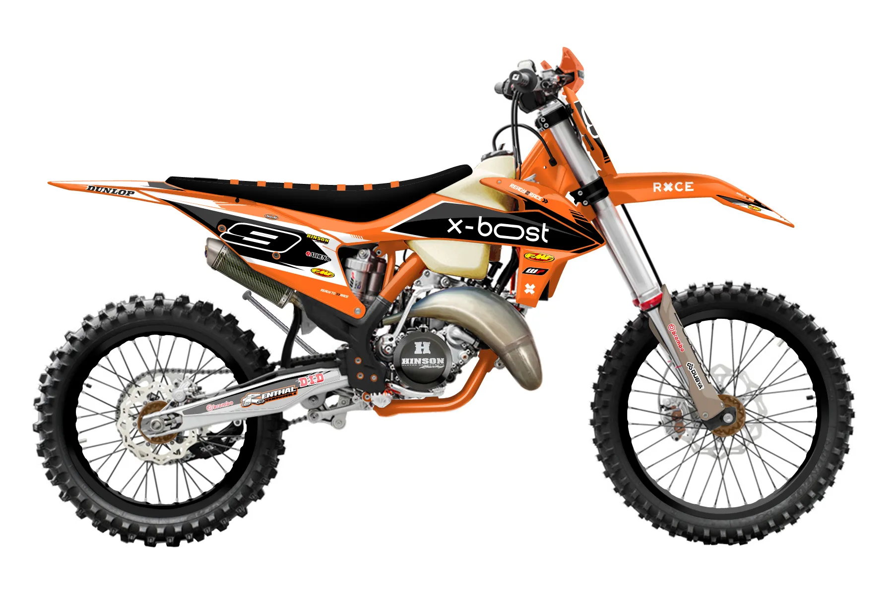 «Proven» — готовый комплект графики серии Untucked для KTM Offroad Graphic Kit KTM XC 125 2019. В комплекте: графика на бак и боковые облицовки, крылья (переднее и заднее), передний щиток, номерные таблички, защита вилки. Материал: ПВХ-винил 80 мкр с холодной ламинацией 300 мкр, общая толщина 380 мкр; покрытие глянцевое или матовое на выбор. Устойчив к UV-излучению, воде, бензину и мойке высокого давления. Клей акриловый на сольвентной основе — постоянный, для гибких пластиков. На простых поверхностях монтируется без нагрева; для сложных изгибов рекомендуем фен. Этот пресет можно заказать как есть или взять за основу в конструкторе: поменять цвета, добавить стартовый номер и свой бренд. Производство — 3–5 рабочих дней, доставка по России СДЭКом или Почтой, по СНГ — курьерскими службами.
