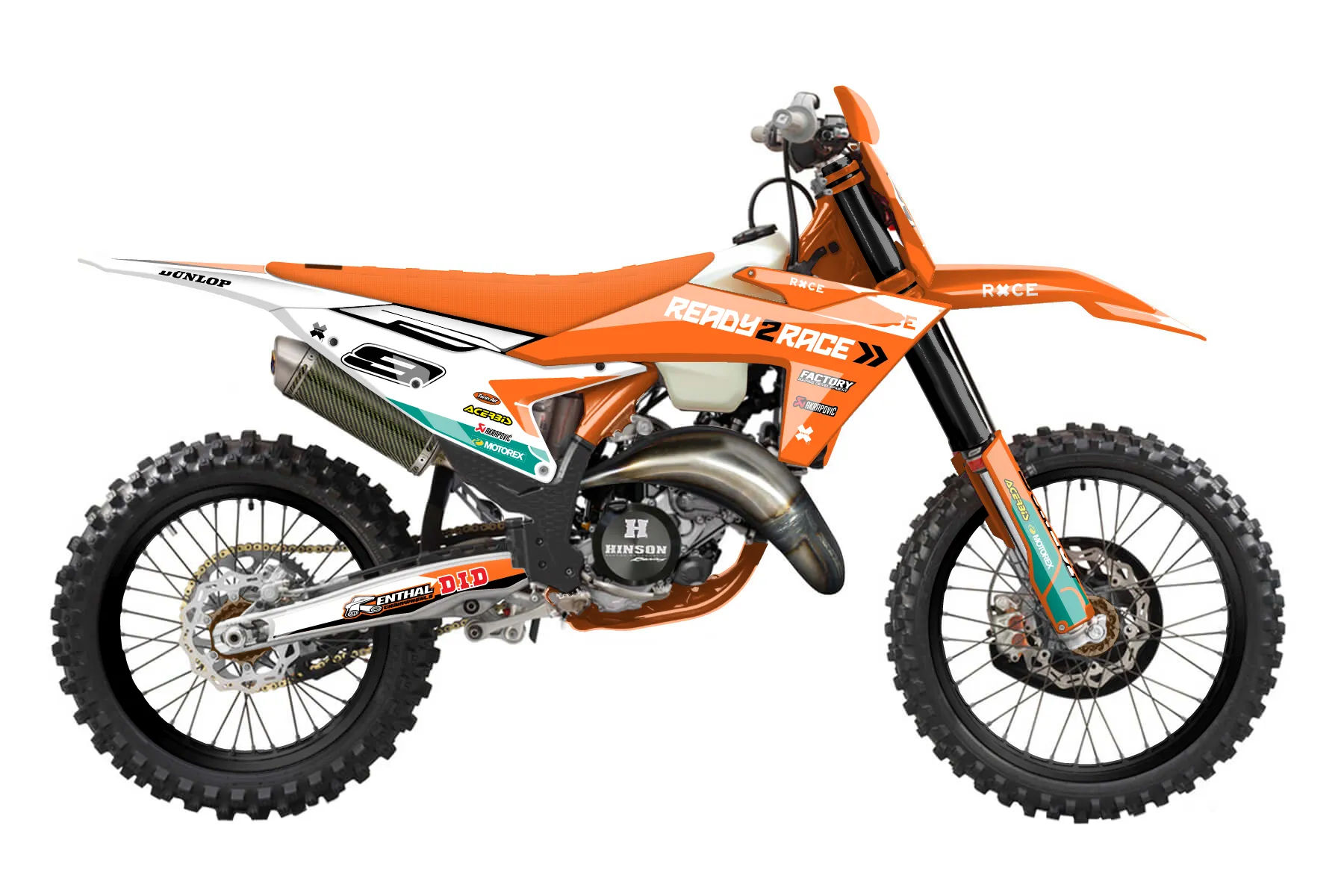 «2024 125xc orange» — готовый комплект графики серии Flow для KTM Offroad Graphic Kit KTM XC 125 2023. В комплекте: графика на бак и боковые облицовки, крылья (переднее и заднее), передний щиток, номерные таблички, защита вилки. Материал: ПВХ-винил 80 мкр с холодной ламинацией 300 мкр, общая толщина 380 мкр; покрытие глянцевое или матовое на выбор. Устойчив к UV-излучению, воде, бензину и мойке высокого давления. Клей акриловый на сольвентной основе — постоянный, для гибких пластиков. На простых поверхностях монтируется без нагрева; для сложных изгибов рекомендуем фен. Этот пресет можно заказать как есть или взять за основу в конструкторе: поменять цвета, добавить стартовый номер и свой бренд. Производство — 3–5 рабочих дней, доставка по России СДЭКом или Почтой, по СНГ — курьерскими службами.