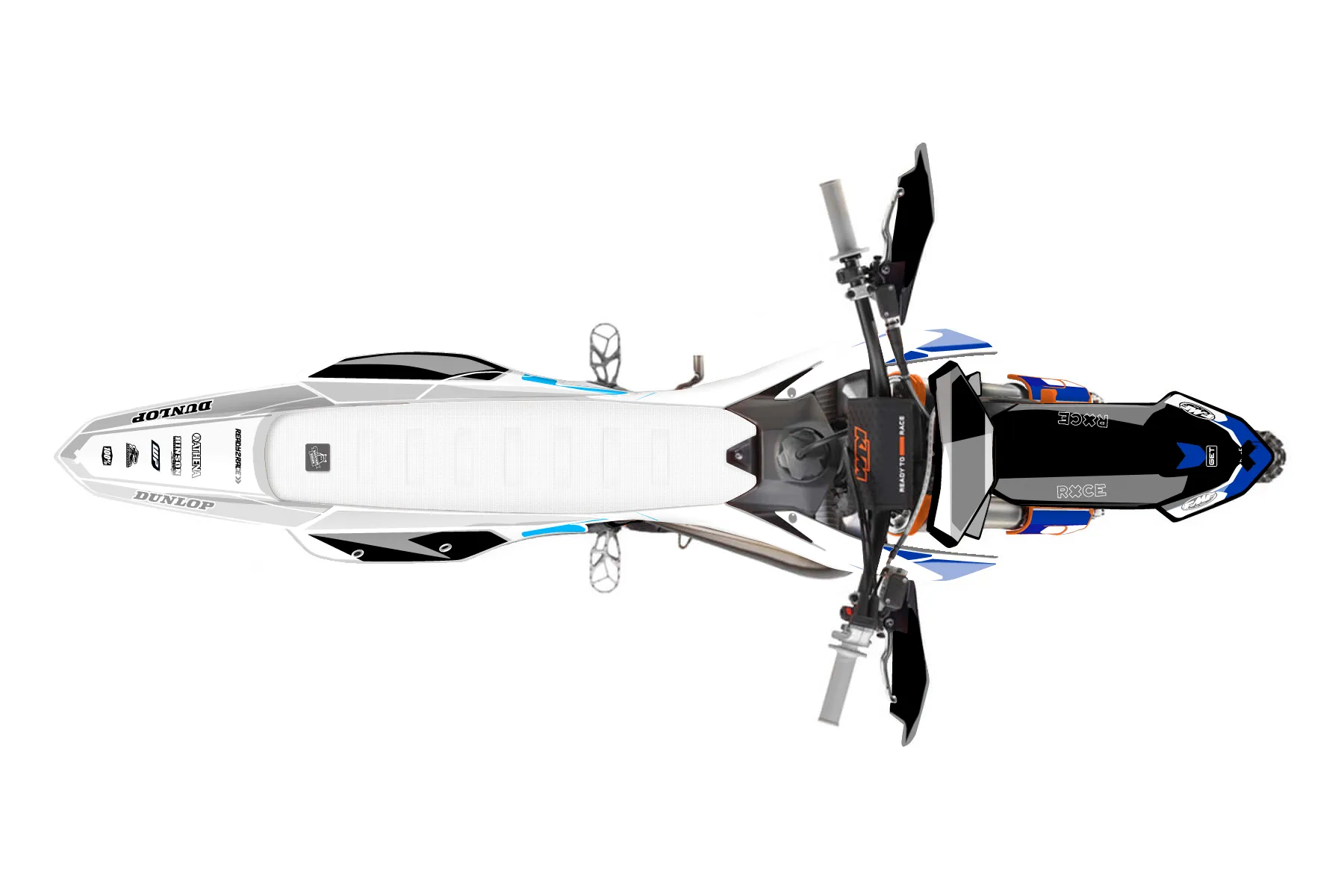 «2025 ideas» — готовый комплект графики серии Flow для KTM Offroad Graphic Kit KTM XC 125 2023. В комплекте: графика на бак и боковые облицовки, крылья (переднее и заднее), передний щиток, номерные таблички, защита вилки. Материал: ПВХ-винил 80 мкр с холодной ламинацией 300 мкр, общая толщина 380 мкр; покрытие глянцевое или матовое на выбор. Устойчив к UV-излучению, воде, бензину и мойке высокого давления. Клей акриловый на сольвентной основе — постоянный, для гибких пластиков. На простых поверхностях монтируется без нагрева; для сложных изгибов рекомендуем фен. Этот пресет можно заказать как есть или взять за основу в конструкторе: поменять цвета, добавить стартовый номер и свой бренд. Производство — 3–5 рабочих дней, доставка по России СДЭКом или Почтой, по СНГ — курьерскими службами.