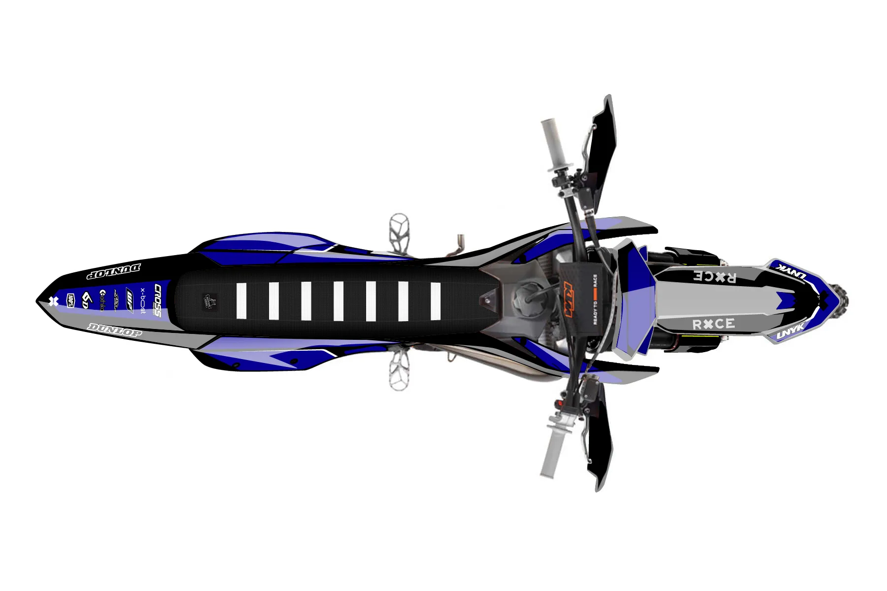«Purple dragon - base design » — готовый комплект графики серии Flow для KTM Offroad Graphic Kit KTM XC 125 2023. В комплекте: графика на бак и боковые облицовки, крылья (переднее и заднее), передний щиток, номерные таблички, защита вилки. Материал: ПВХ-винил 80 мкр с холодной ламинацией 300 мкр, общая толщина 380 мкр; покрытие глянцевое или матовое на выбор. Устойчив к UV-излучению, воде, бензину и мойке высокого давления. Клей акриловый на сольвентной основе — постоянный, для гибких пластиков. На простых поверхностях монтируется без нагрева; для сложных изгибов рекомендуем фен. Этот пресет можно заказать как есть или взять за основу в конструкторе: поменять цвета, добавить стартовый номер и свой бренд. Производство — 3–5 рабочих дней, доставка по России СДЭКом или Почтой, по СНГ — курьерскими службами.