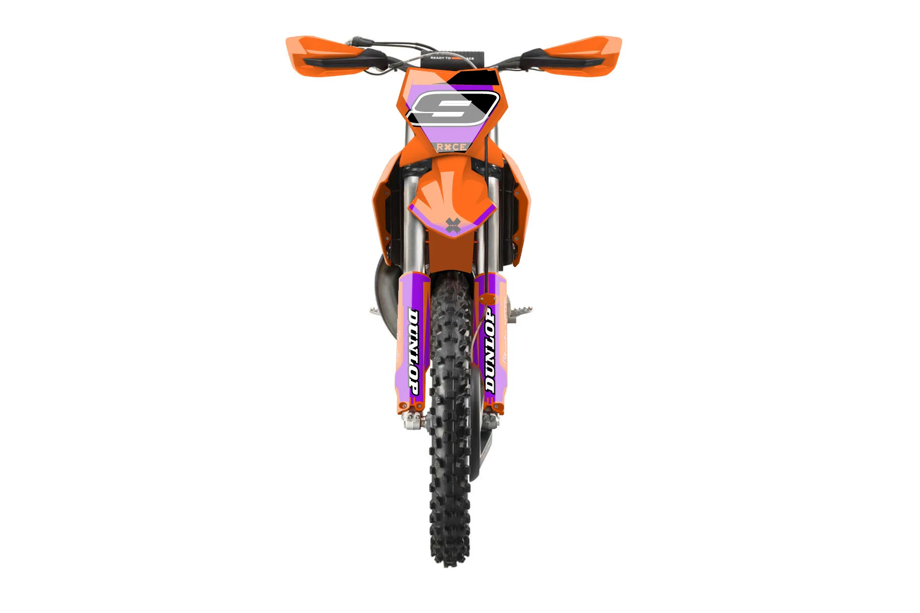 «design with logos» — готовый комплект графики серии Fusion для KTM Offroad Graphic Kit KTM XC 125 2023. В комплекте: графика на бак и боковые облицовки, крылья (переднее и заднее), передний щиток, номерные таблички, защита вилки. Материал: ПВХ-винил 80 мкр с холодной ламинацией 300 мкр, общая толщина 380 мкр; покрытие глянцевое или матовое на выбор. Устойчив к UV-излучению, воде, бензину и мойке высокого давления. Клей акриловый на сольвентной основе — постоянный, для гибких пластиков. На простых поверхностях монтируется без нагрева; для сложных изгибов рекомендуем фен. Этот пресет можно заказать как есть или взять за основу в конструкторе: поменять цвета, добавить стартовый номер и свой бренд. Производство — 3–5 рабочих дней, доставка по России СДЭКом или Почтой, по СНГ — курьерскими службами.
