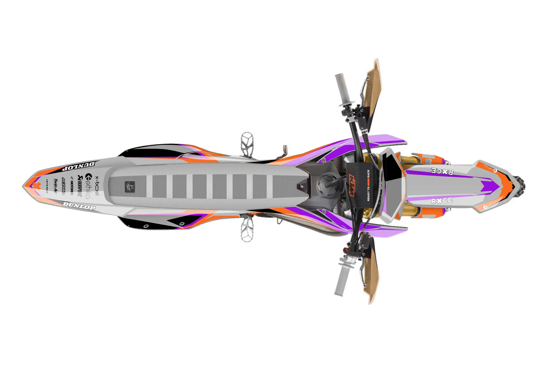 «Emphatic» — готовый комплект графики серии Fusion для KTM Offroad Graphic Kit KTM XC 125 2023. В комплекте: графика на бак и боковые облицовки, крылья (переднее и заднее), передний щиток, номерные таблички, защита вилки. Материал: ПВХ-винил 80 мкр с холодной ламинацией 300 мкр, общая толщина 380 мкр; покрытие глянцевое или матовое на выбор. Устойчив к UV-излучению, воде, бензину и мойке высокого давления. Клей акриловый на сольвентной основе — постоянный, для гибких пластиков. На простых поверхностях монтируется без нагрева; для сложных изгибов рекомендуем фен. Этот пресет можно заказать как есть или взять за основу в конструкторе: поменять цвета, добавить стартовый номер и свой бренд. Производство — 3–5 рабочих дней, доставка по России СДЭКом или Почтой, по СНГ — курьерскими службами.