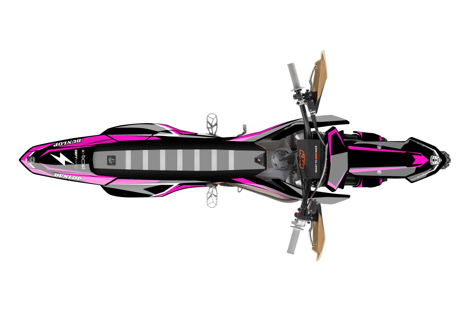 «Extreme» — готовый комплект графики серии Fusion для KTM Offroad Graphic Kit KTM XC 125 2023. В комплекте: графика на бак и боковые облицовки, крылья (переднее и заднее), передний щиток, номерные таблички, защита вилки. Материал: ПВХ-винил 80 мкр с холодной ламинацией 300 мкр, общая толщина 380 мкр; покрытие глянцевое или матовое на выбор. Устойчив к UV-излучению, воде, бензину и мойке высокого давления. Клей акриловый на сольвентной основе — постоянный, для гибких пластиков. На простых поверхностях монтируется без нагрева; для сложных изгибов рекомендуем фен. Этот пресет можно заказать как есть или взять за основу в конструкторе: поменять цвета, добавить стартовый номер и свой бренд. Производство — 3–5 рабочих дней, доставка по России СДЭКом или Почтой, по СНГ — курьерскими службами.