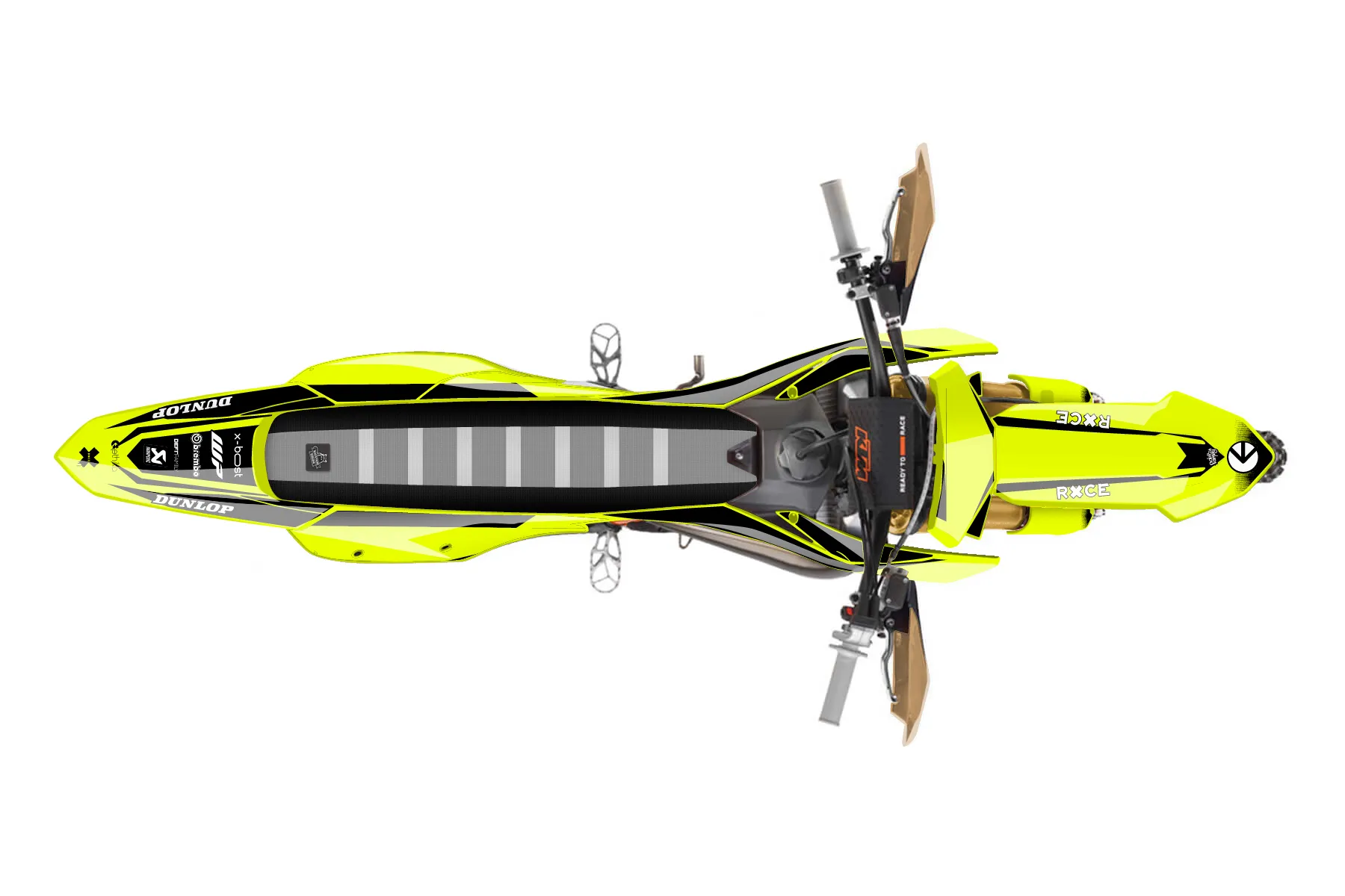 «Fuzion Fluorscent» — готовый комплект графики серии Fusion для KTM Offroad Graphic Kit KTM XC 125 2023. В комплекте: графика на бак и боковые облицовки, крылья (переднее и заднее), передний щиток, номерные таблички, защита вилки. Материал: ПВХ-винил 80 мкр с холодной ламинацией 300 мкр, общая толщина 380 мкр; покрытие глянцевое или матовое на выбор. Устойчив к UV-излучению, воде, бензину и мойке высокого давления. Клей акриловый на сольвентной основе — постоянный, для гибких пластиков. На простых поверхностях монтируется без нагрева; для сложных изгибов рекомендуем фен. Этот пресет можно заказать как есть или взять за основу в конструкторе: поменять цвета, добавить стартовый номер и свой бренд. Производство — 3–5 рабочих дней, доставка по России СДЭКом или Почтой, по СНГ — курьерскими службами.