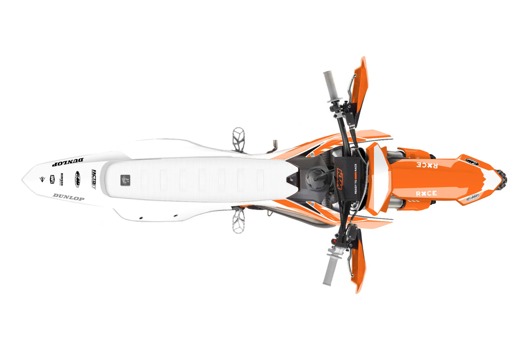 «Bones» — готовый комплект графики серии Maverick для KTM Offroad Graphic Kit KTM XC 125 2023. В комплекте: графика на бак и боковые облицовки, крылья (переднее и заднее), передний щиток, номерные таблички, защита вилки. Материал: ПВХ-винил 80 мкр с холодной ламинацией 300 мкр, общая толщина 380 мкр; покрытие глянцевое или матовое на выбор. Устойчив к UV-излучению, воде, бензину и мойке высокого давления. Клей акриловый на сольвентной основе — постоянный, для гибких пластиков. На простых поверхностях монтируется без нагрева; для сложных изгибов рекомендуем фен. Этот пресет можно заказать как есть или взять за основу в конструкторе: поменять цвета, добавить стартовый номер и свой бренд. Производство — 3–5 рабочих дней, доставка по России СДЭКом или Почтой, по СНГ — курьерскими службами.