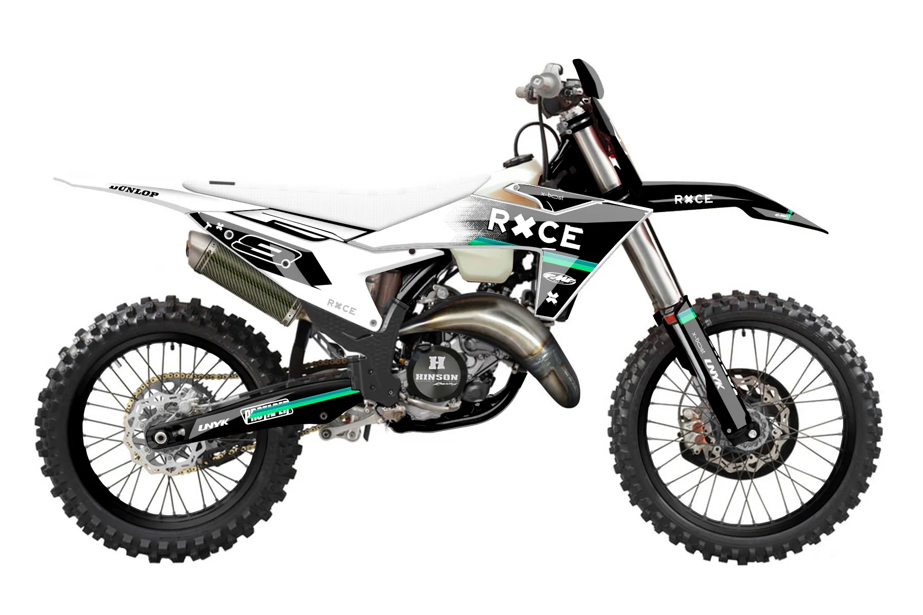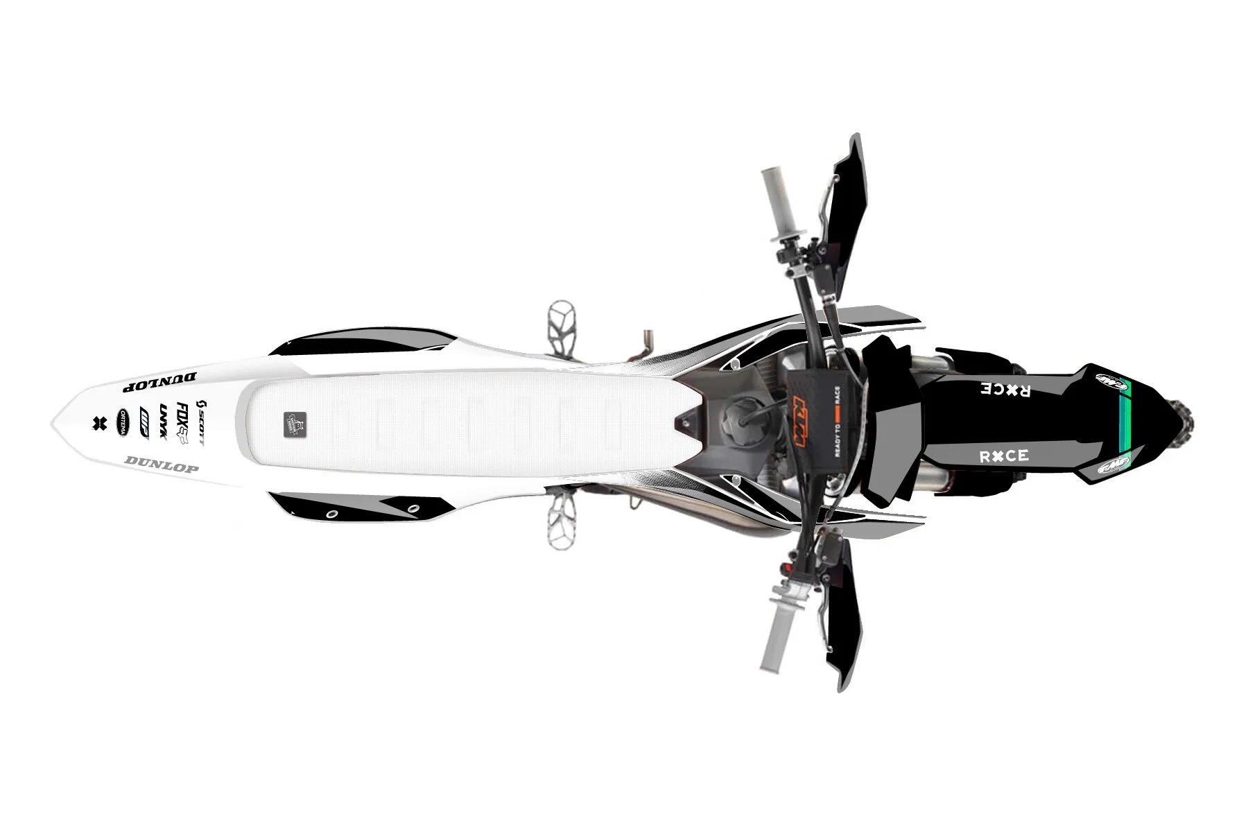 «Champ» — готовый комплект графики серии Maverick для KTM Offroad Graphic Kit KTM XC 125 2023. В комплекте: графика на бак и боковые облицовки, крылья (переднее и заднее), передний щиток, номерные таблички, защита вилки. Материал: ПВХ-винил 80 мкр с холодной ламинацией 300 мкр, общая толщина 380 мкр; покрытие глянцевое или матовое на выбор. Устойчив к UV-излучению, воде, бензину и мойке высокого давления. Клей акриловый на сольвентной основе — постоянный, для гибких пластиков. На простых поверхностях монтируется без нагрева; для сложных изгибов рекомендуем фен. Этот пресет можно заказать как есть или взять за основу в конструкторе: поменять цвета, добавить стартовый номер и свой бренд. Производство — 3–5 рабочих дней, доставка по России СДЭКом или Почтой, по СНГ — курьерскими службами.