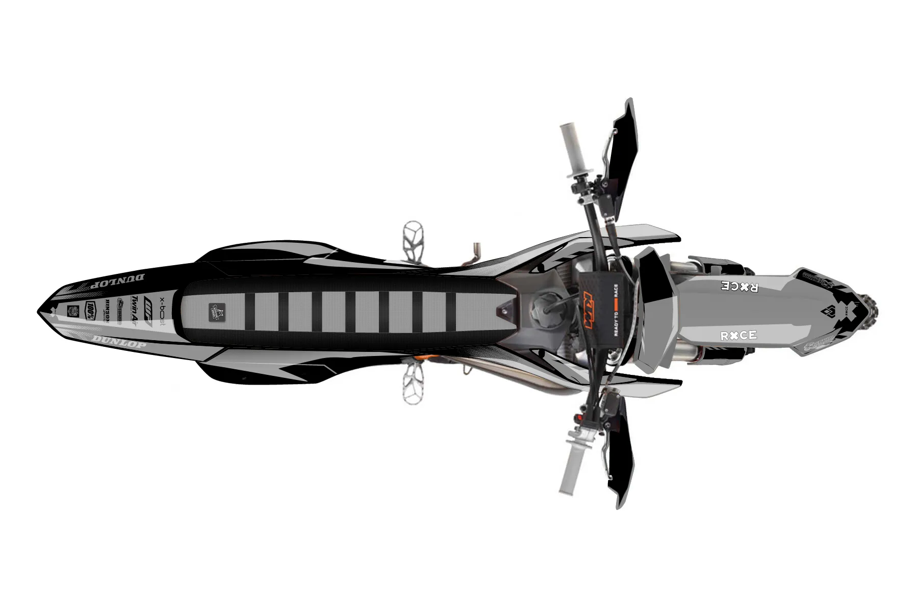 «Grip» — готовый комплект графики серии Maverick для KTM Offroad Graphic Kit KTM XC 125 2023. В комплекте: графика на бак и боковые облицовки, крылья (переднее и заднее), передний щиток, номерные таблички, защита вилки. Материал: ПВХ-винил 80 мкр с холодной ламинацией 300 мкр, общая толщина 380 мкр; покрытие глянцевое или матовое на выбор. Устойчив к UV-излучению, воде, бензину и мойке высокого давления. Клей акриловый на сольвентной основе — постоянный, для гибких пластиков. На простых поверхностях монтируется без нагрева; для сложных изгибов рекомендуем фен. Этот пресет можно заказать как есть или взять за основу в конструкторе: поменять цвета, добавить стартовый номер и свой бренд. Производство — 3–5 рабочих дней, доставка по России СДЭКом или Почтой, по СНГ — курьерскими службами.