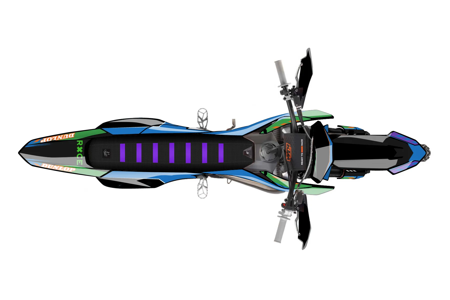 «SEBI TCE» — готовый комплект графики серии Maverick для KTM Offroad Graphic Kit KTM XC 125 2023. В комплекте: графика на бак и боковые облицовки, крылья (переднее и заднее), передний щиток, номерные таблички, защита вилки. Материал: ПВХ-винил 80 мкр с холодной ламинацией 300 мкр, общая толщина 380 мкр; покрытие глянцевое или матовое на выбор. Устойчив к UV-излучению, воде, бензину и мойке высокого давления. Клей акриловый на сольвентной основе — постоянный, для гибких пластиков. На простых поверхностях монтируется без нагрева; для сложных изгибов рекомендуем фен. Этот пресет можно заказать как есть или взять за основу в конструкторе: поменять цвета, добавить стартовый номер и свой бренд. Производство — 3–5 рабочих дней, доставка по России СДЭКом или Почтой, по СНГ — курьерскими службами.
