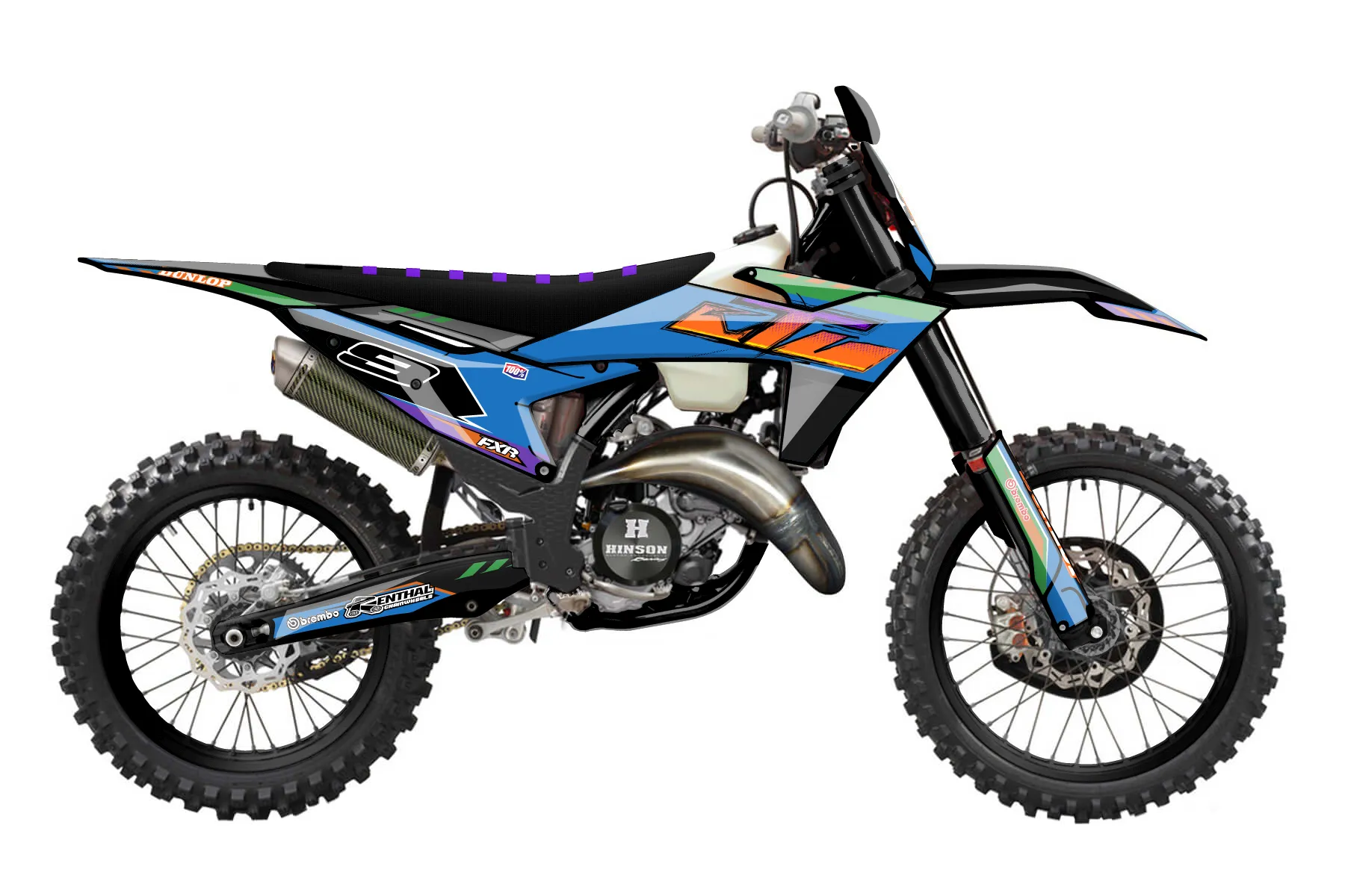 «sebiii final 01\11/25» — готовый комплект графики серии Maverick для KTM Offroad Graphic Kit KTM XC 125 2023. В комплекте: графика на бак и боковые облицовки, крылья (переднее и заднее), передний щиток, номерные таблички, защита вилки. Материал: ПВХ-винил 80 мкр с холодной ламинацией 300 мкр, общая толщина 380 мкр; покрытие глянцевое или матовое на выбор. Устойчив к UV-излучению, воде, бензину и мойке высокого давления. Клей акриловый на сольвентной основе — постоянный, для гибких пластиков. На простых поверхностях монтируется без нагрева; для сложных изгибов рекомендуем фен. Этот пресет можно заказать как есть или взять за основу в конструкторе: поменять цвета, добавить стартовый номер и свой бренд. Производство — 3–5 рабочих дней, доставка по России СДЭКом или Почтой, по СНГ — курьерскими службами.