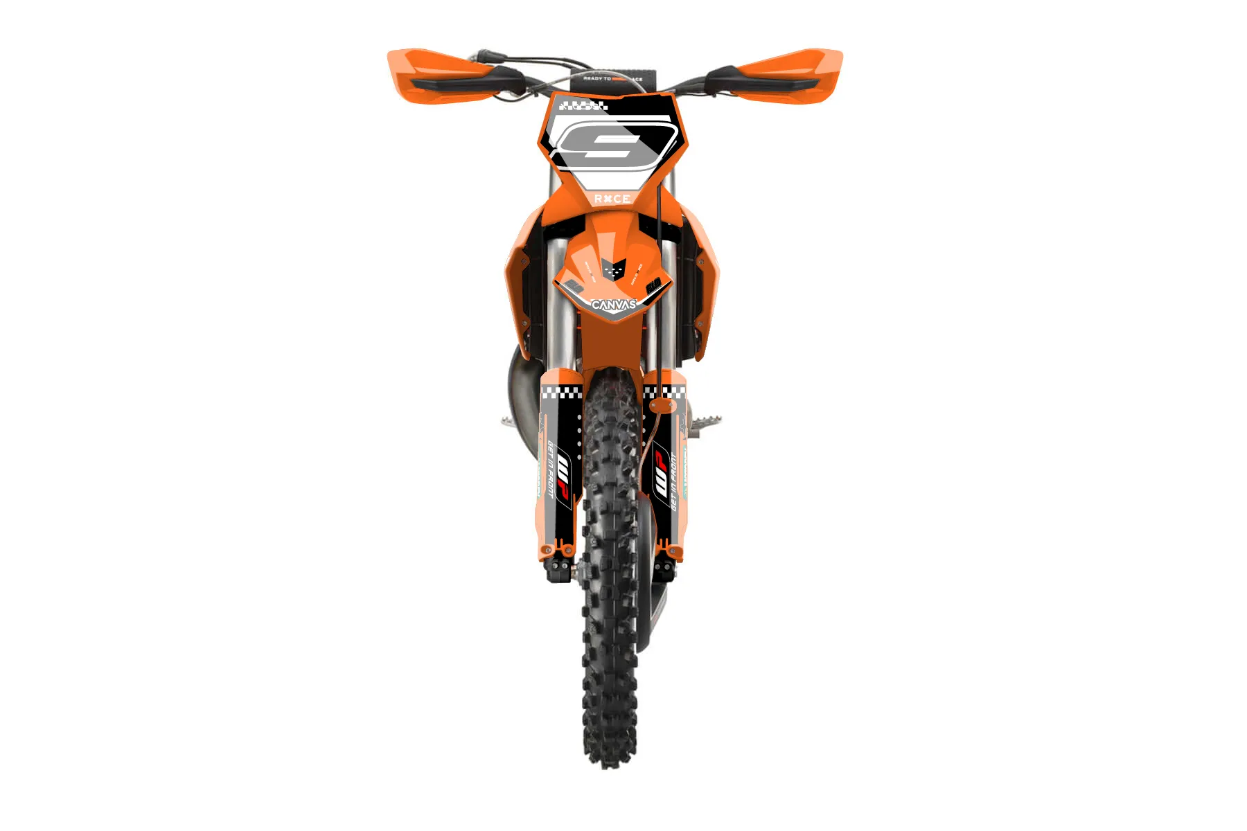 «24KTM125 FINAL 2» — готовый комплект графики серии Staple для KTM Offroad Graphic Kit KTM XC 125 2023. В комплекте: графика на бак и боковые облицовки, крылья (переднее и заднее), передний щиток, номерные таблички, защита вилки. Материал: ПВХ-винил 80 мкр с холодной ламинацией 300 мкр, общая толщина 380 мкр; покрытие глянцевое или матовое на выбор. Устойчив к UV-излучению, воде, бензину и мойке высокого давления. Клей акриловый на сольвентной основе — постоянный, для гибких пластиков. На простых поверхностях монтируется без нагрева; для сложных изгибов рекомендуем фен. Этот пресет можно заказать как есть или взять за основу в конструкторе: поменять цвета, добавить стартовый номер и свой бренд. Производство — 3–5 рабочих дней, доставка по России СДЭКом или Почтой, по СНГ — курьерскими службами.