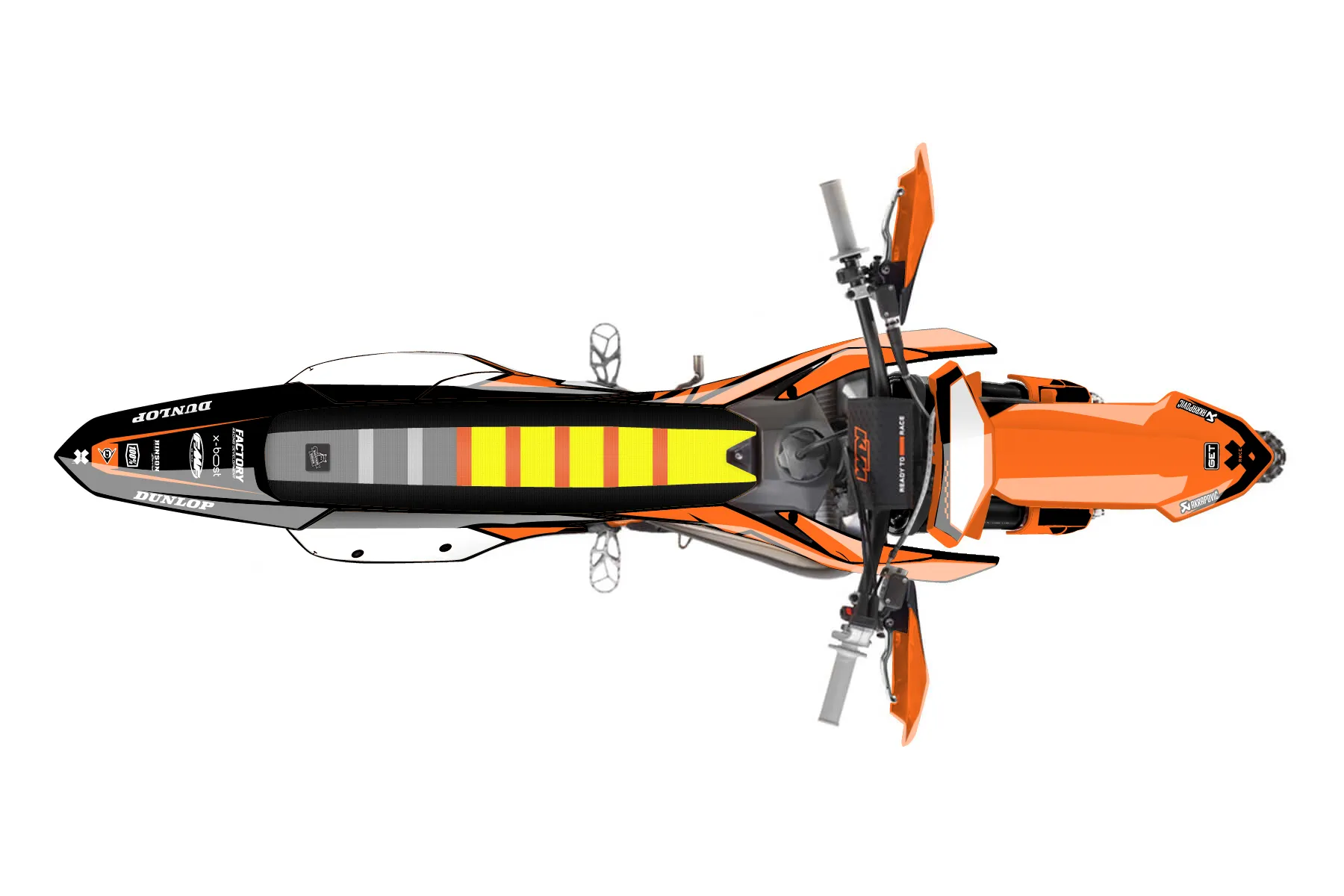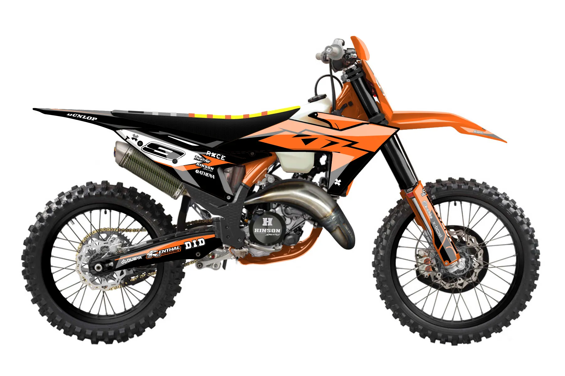 «Dom» — готовый комплект графики серии Staple для KTM Offroad Graphic Kit KTM XC 125 2023. В комплекте: графика на бак и боковые облицовки, крылья (переднее и заднее), передний щиток, номерные таблички, защита вилки. Материал: ПВХ-винил 80 мкр с холодной ламинацией 300 мкр, общая толщина 380 мкр; покрытие глянцевое или матовое на выбор. Устойчив к UV-излучению, воде, бензину и мойке высокого давления. Клей акриловый на сольвентной основе — постоянный, для гибких пластиков. На простых поверхностях монтируется без нагрева; для сложных изгибов рекомендуем фен. Этот пресет можно заказать как есть или взять за основу в конструкторе: поменять цвета, добавить стартовый номер и свой бренд. Производство — 3–5 рабочих дней, доставка по России СДЭКом или Почтой, по СНГ — курьерскими службами.