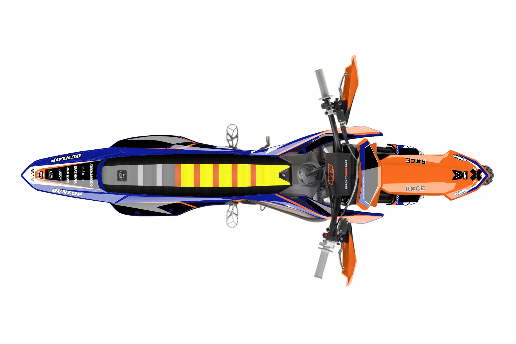 «New Era» — готовый комплект графики серии Staple для KTM Offroad Graphic Kit KTM XC 125 2023. В комплекте: графика на бак и боковые облицовки, крылья (переднее и заднее), передний щиток, номерные таблички, защита вилки. Материал: ПВХ-винил 80 мкр с холодной ламинацией 300 мкр, общая толщина 380 мкр; покрытие глянцевое или матовое на выбор. Устойчив к UV-излучению, воде, бензину и мойке высокого давления. Клей акриловый на сольвентной основе — постоянный, для гибких пластиков. На простых поверхностях монтируется без нагрева; для сложных изгибов рекомендуем фен. Этот пресет можно заказать как есть или взять за основу в конструкторе: поменять цвета, добавить стартовый номер и свой бренд. Производство — 3–5 рабочих дней, доставка по России СДЭКом или Почтой, по СНГ — курьерскими службами.