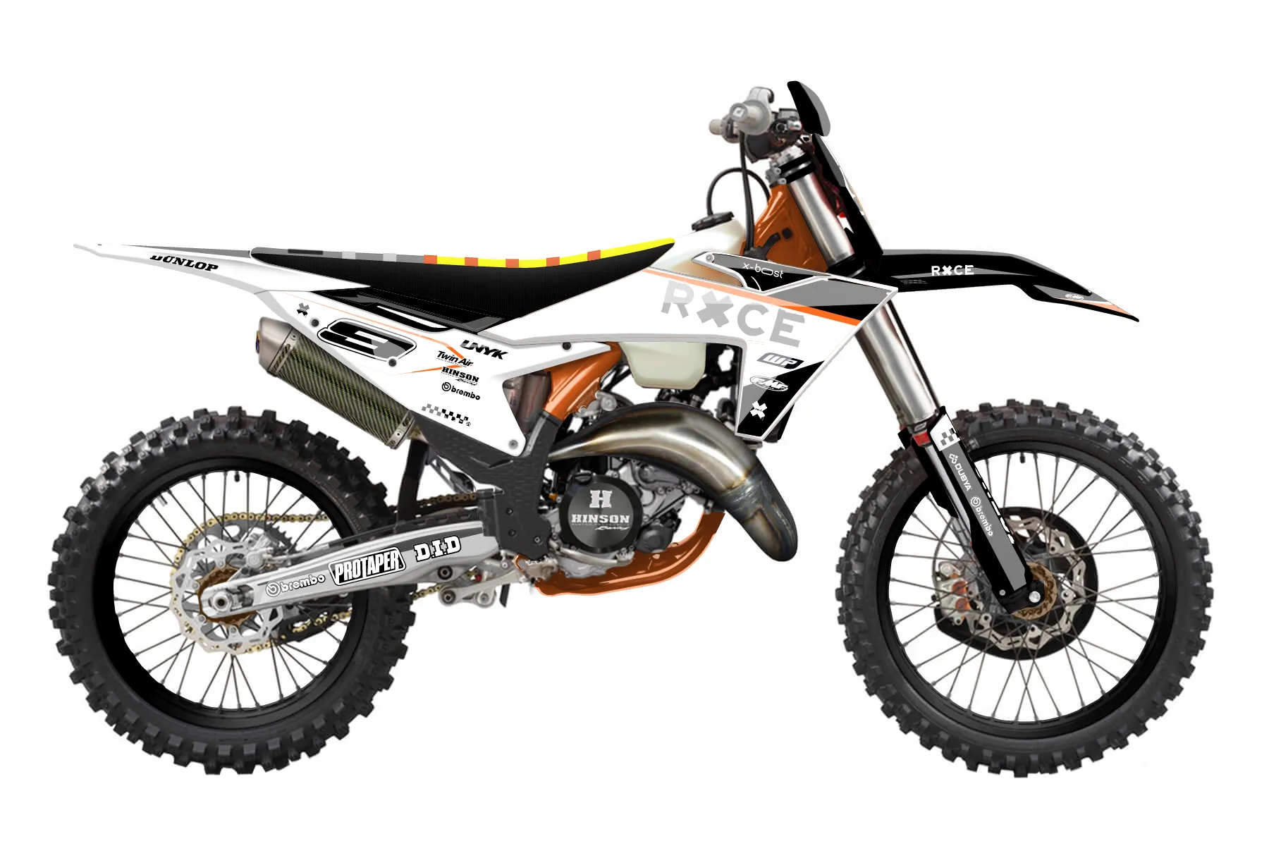 «Optical» — готовый комплект графики серии Staple для KTM Offroad Graphic Kit KTM XC 125 2023. В комплекте: графика на бак и боковые облицовки, крылья (переднее и заднее), передний щиток, номерные таблички, защита вилки. Материал: ПВХ-винил 80 мкр с холодной ламинацией 300 мкр, общая толщина 380 мкр; покрытие глянцевое или матовое на выбор. Устойчив к UV-излучению, воде, бензину и мойке высокого давления. Клей акриловый на сольвентной основе — постоянный, для гибких пластиков. На простых поверхностях монтируется без нагрева; для сложных изгибов рекомендуем фен. Этот пресет можно заказать как есть или взять за основу в конструкторе: поменять цвета, добавить стартовый номер и свой бренд. Производство — 3–5 рабочих дней, доставка по России СДЭКом или Почтой, по СНГ — курьерскими службами.