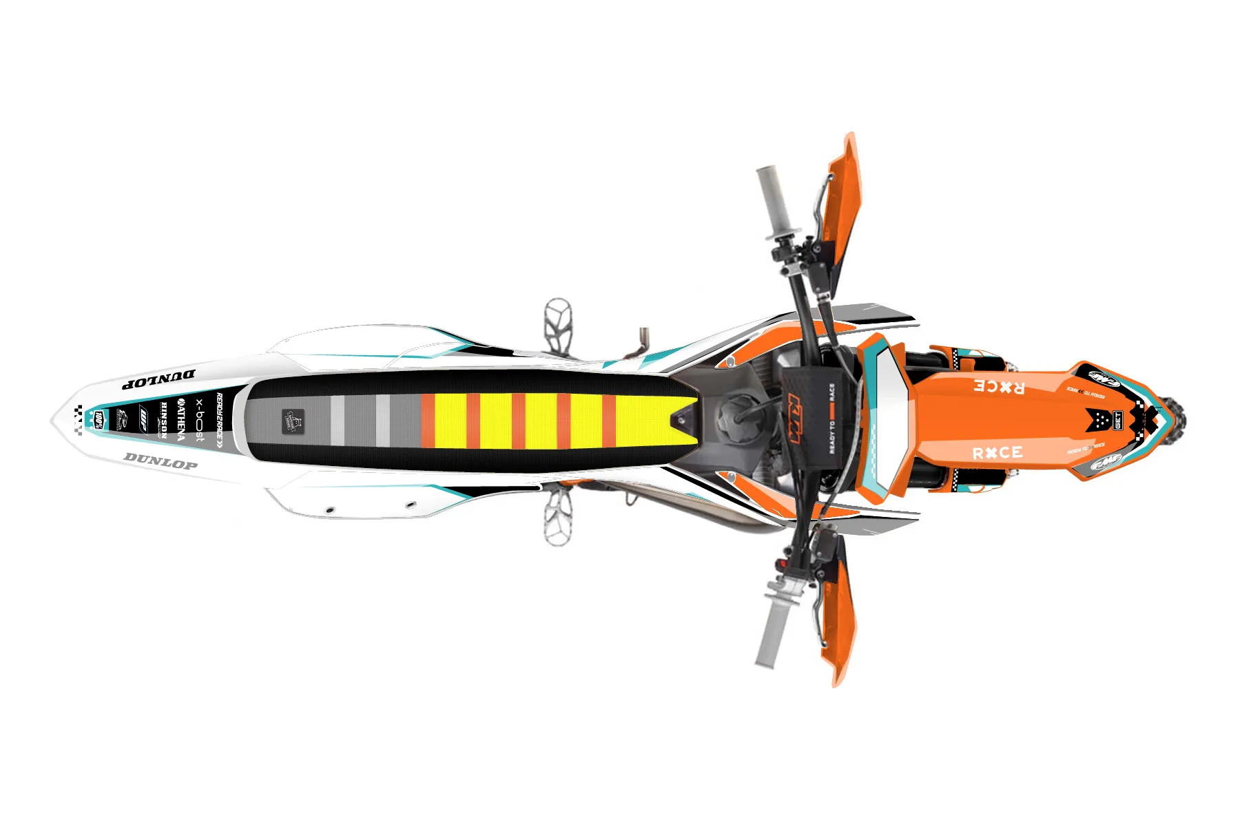 «Rutted» — готовый комплект графики серии Staple для KTM Offroad Graphic Kit KTM XC 125 2023. В комплекте: графика на бак и боковые облицовки, крылья (переднее и заднее), передний щиток, номерные таблички, защита вилки. Материал: ПВХ-винил 80 мкр с холодной ламинацией 300 мкр, общая толщина 380 мкр; покрытие глянцевое или матовое на выбор. Устойчив к UV-излучению, воде, бензину и мойке высокого давления. Клей акриловый на сольвентной основе — постоянный, для гибких пластиков. На простых поверхностях монтируется без нагрева; для сложных изгибов рекомендуем фен. Этот пресет можно заказать как есть или взять за основу в конструкторе: поменять цвета, добавить стартовый номер и свой бренд. Производство — 3–5 рабочих дней, доставка по России СДЭКом или Почтой, по СНГ — курьерскими службами.