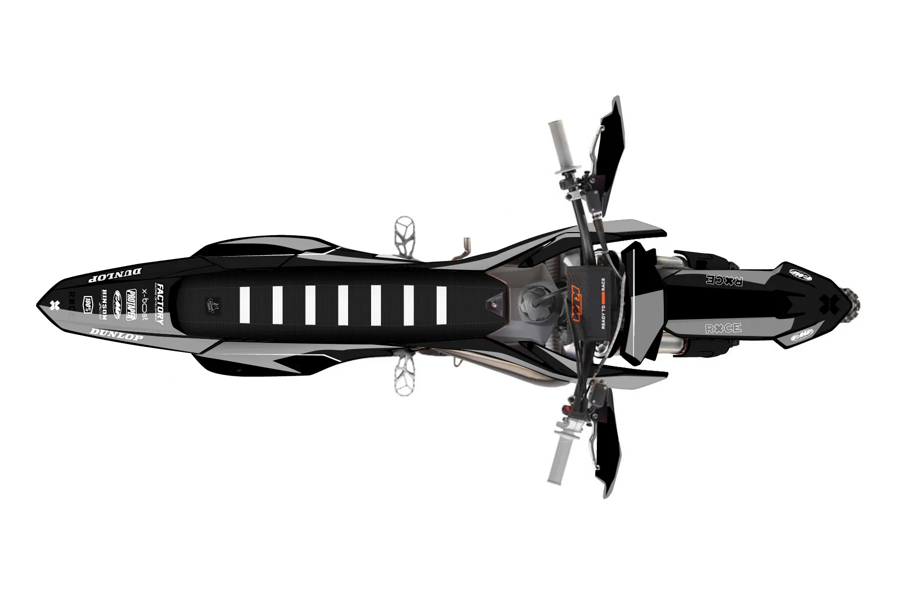 «Bubble» — готовый комплект графики серии Untucked для KTM Offroad Graphic Kit KTM XC 125 2023. В комплекте: графика на бак и боковые облицовки, крылья (переднее и заднее), передний щиток, номерные таблички, защита вилки. Материал: ПВХ-винил 80 мкр с холодной ламинацией 300 мкр, общая толщина 380 мкр; покрытие глянцевое или матовое на выбор. Устойчив к UV-излучению, воде, бензину и мойке высокого давления. Клей акриловый на сольвентной основе — постоянный, для гибких пластиков. На простых поверхностях монтируется без нагрева; для сложных изгибов рекомендуем фен. Этот пресет можно заказать как есть или взять за основу в конструкторе: поменять цвета, добавить стартовый номер и свой бренд. Производство — 3–5 рабочих дней, доставка по России СДЭКом или Почтой, по СНГ — курьерскими службами.