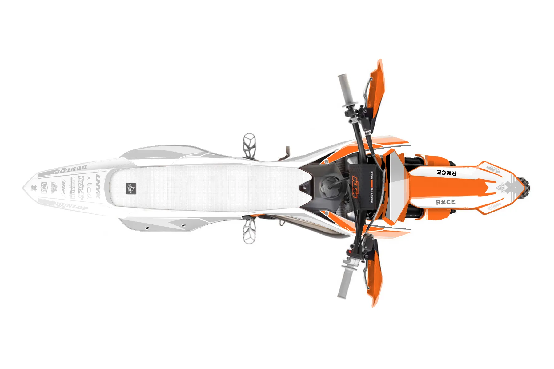 «ktm 125 xc 1st idea» — готовый комплект графики серии Untucked для KTM Offroad Graphic Kit KTM XC 125 2023. В комплекте: графика на бак и боковые облицовки, крылья (переднее и заднее), передний щиток, номерные таблички, защита вилки. Материал: ПВХ-винил 80 мкр с холодной ламинацией 300 мкр, общая толщина 380 мкр; покрытие глянцевое или матовое на выбор. Устойчив к UV-излучению, воде, бензину и мойке высокого давления. Клей акриловый на сольвентной основе — постоянный, для гибких пластиков. На простых поверхностях монтируется без нагрева; для сложных изгибов рекомендуем фен. Этот пресет можно заказать как есть или взять за основу в конструкторе: поменять цвета, добавить стартовый номер и свой бренд. Производство — 3–5 рабочих дней, доставка по России СДЭКом или Почтой, по СНГ — курьерскими службами.