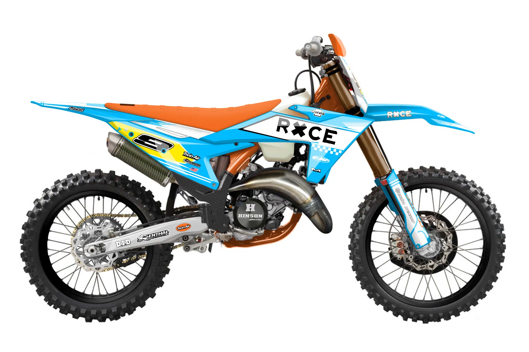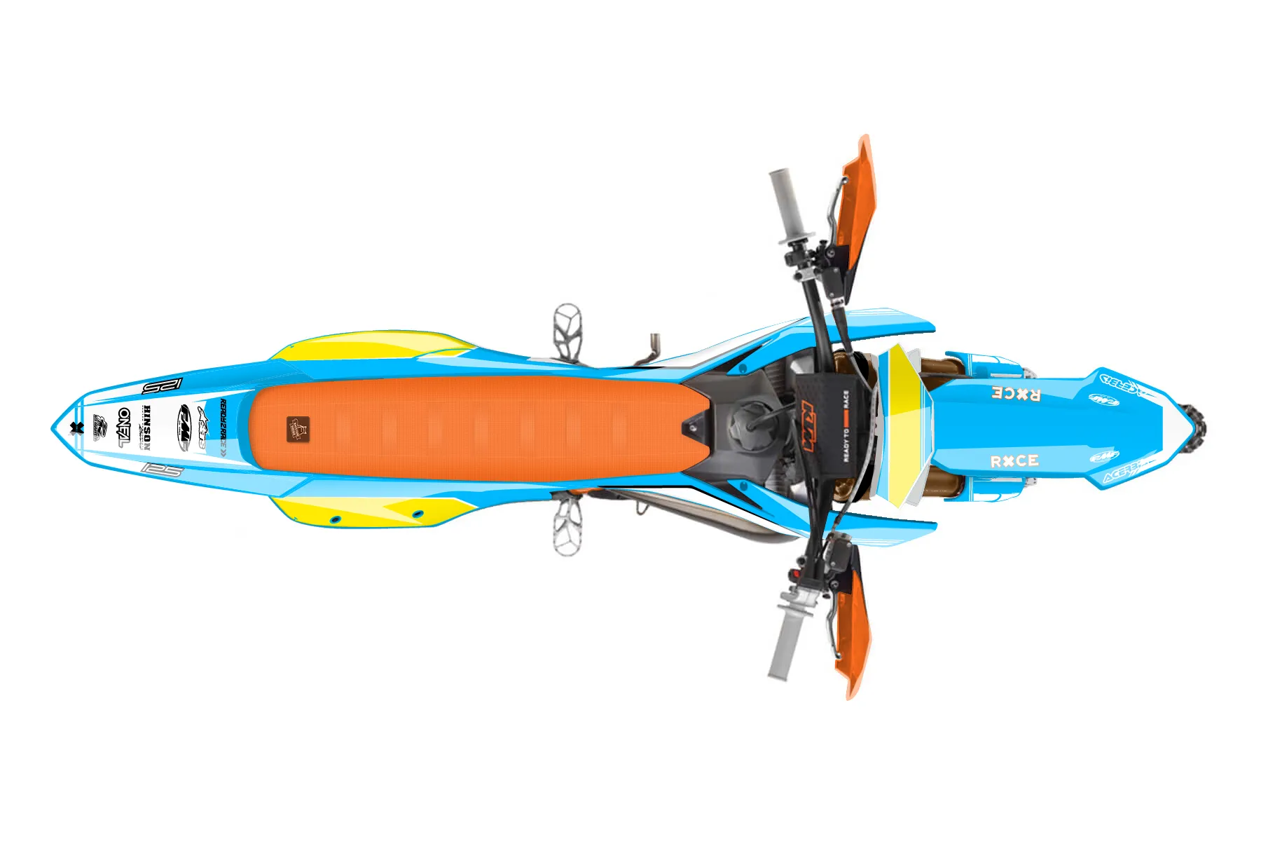 «RACE B FINAL» — готовый комплект графики серии Untucked для KTM Offroad Graphic Kit KTM XC 125 2023. В комплекте: графика на бак и боковые облицовки, крылья (переднее и заднее), передний щиток, номерные таблички, защита вилки. Материал: ПВХ-винил 80 мкр с холодной ламинацией 300 мкр, общая толщина 380 мкр; покрытие глянцевое или матовое на выбор. Устойчив к UV-излучению, воде, бензину и мойке высокого давления. Клей акриловый на сольвентной основе — постоянный, для гибких пластиков. На простых поверхностях монтируется без нагрева; для сложных изгибов рекомендуем фен. Этот пресет можно заказать как есть или взять за основу в конструкторе: поменять цвета, добавить стартовый номер и свой бренд. Производство — 3–5 рабочих дней, доставка по России СДЭКом или Почтой, по СНГ — курьерскими службами.