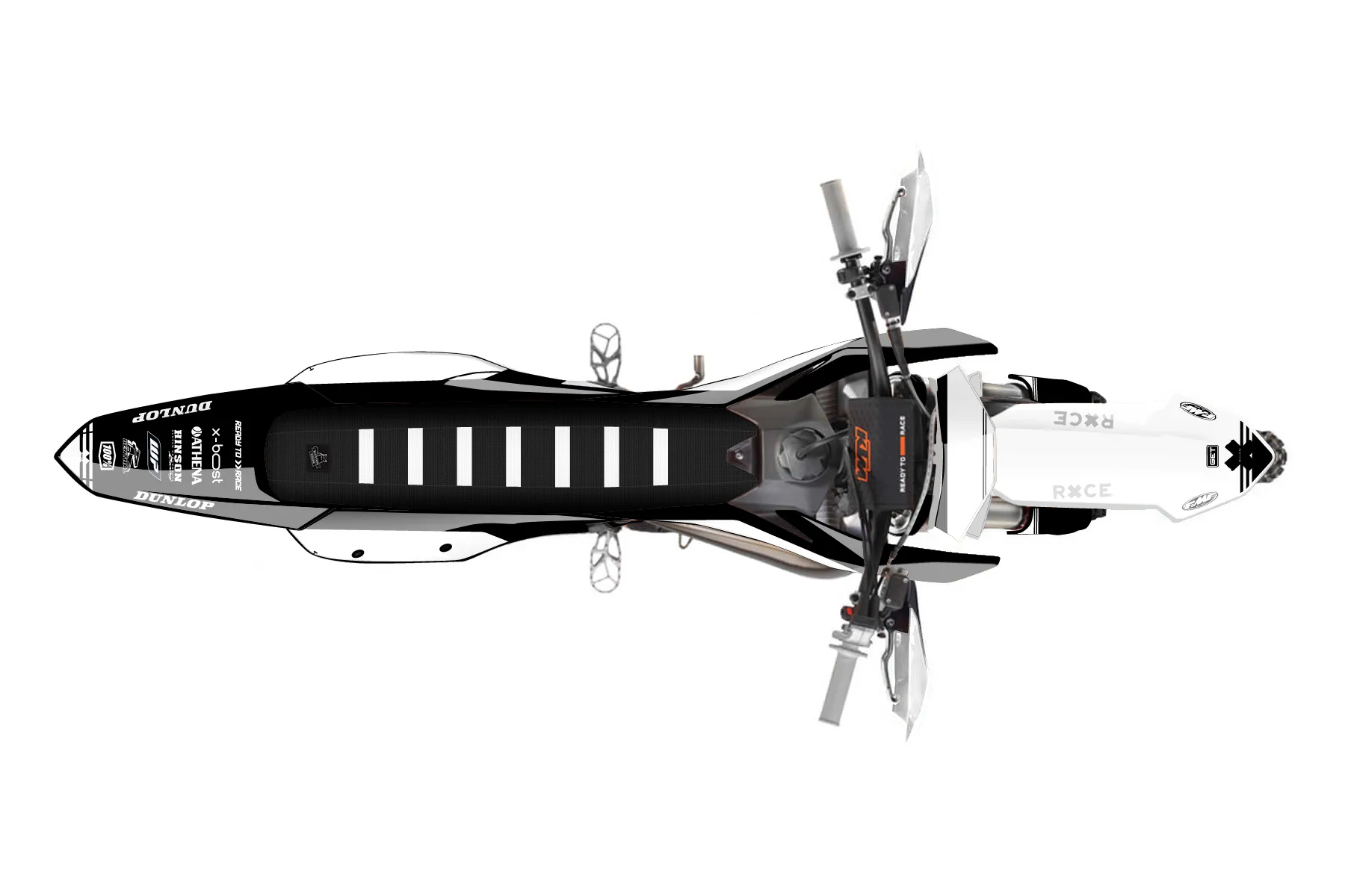 «Specific» — готовый комплект графики серии Untucked для KTM Offroad Graphic Kit KTM XC 125 2023. В комплекте: графика на бак и боковые облицовки, крылья (переднее и заднее), передний щиток, номерные таблички, защита вилки. Материал: ПВХ-винил 80 мкр с холодной ламинацией 300 мкр, общая толщина 380 мкр; покрытие глянцевое или матовое на выбор. Устойчив к UV-излучению, воде, бензину и мойке высокого давления. Клей акриловый на сольвентной основе — постоянный, для гибких пластиков. На простых поверхностях монтируется без нагрева; для сложных изгибов рекомендуем фен. Этот пресет можно заказать как есть или взять за основу в конструкторе: поменять цвета, добавить стартовый номер и свой бренд. Производство — 3–5 рабочих дней, доставка по России СДЭКом или Почтой, по СНГ — курьерскими службами.