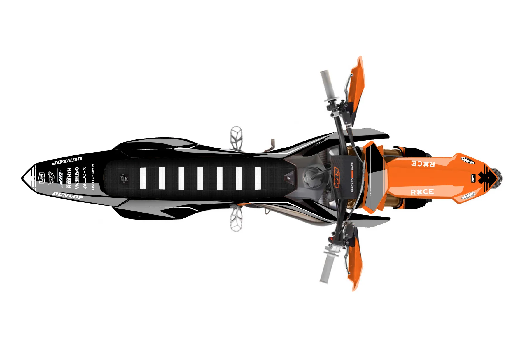 «Unmatched» — готовый комплект графики серии Untucked для KTM Offroad Graphic Kit KTM XC 125 2023. В комплекте: графика на бак и боковые облицовки, крылья (переднее и заднее), передний щиток, номерные таблички, защита вилки. Материал: ПВХ-винил 80 мкр с холодной ламинацией 300 мкр, общая толщина 380 мкр; покрытие глянцевое или матовое на выбор. Устойчив к UV-излучению, воде, бензину и мойке высокого давления. Клей акриловый на сольвентной основе — постоянный, для гибких пластиков. На простых поверхностях монтируется без нагрева; для сложных изгибов рекомендуем фен. Этот пресет можно заказать как есть или взять за основу в конструкторе: поменять цвета, добавить стартовый номер и свой бренд. Производство — 3–5 рабочих дней, доставка по России СДЭКом или Почтой, по СНГ — курьерскими службами.