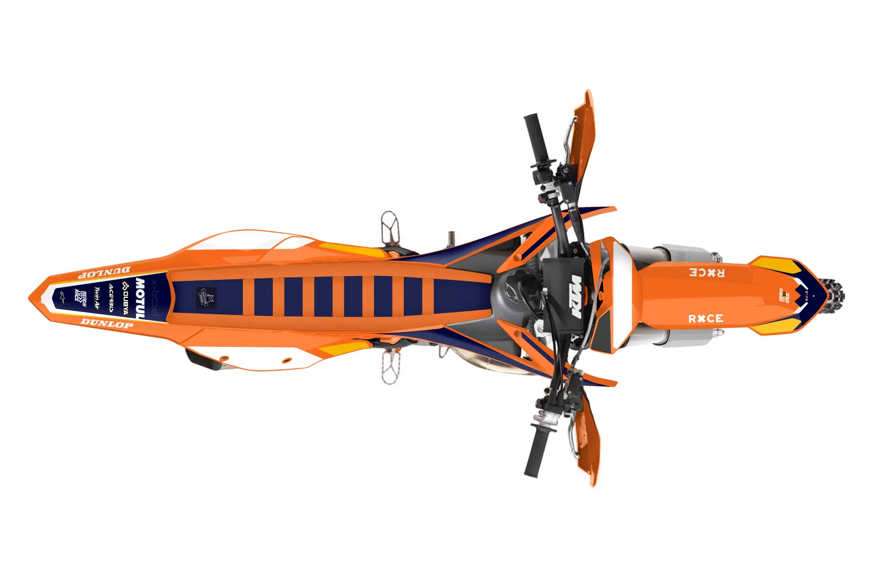 «Pixel» — готовый комплект графики серии Flow для KTM Offroad Graphic Kit KTM XC 150 2016. В комплекте: графика на бак и боковые облицовки, крылья (переднее и заднее), передний щиток, номерные таблички, защита вилки. Материал: ПВХ-винил 80 мкр с холодной ламинацией 300 мкр, общая толщина 380 мкр; покрытие глянцевое или матовое на выбор. Устойчив к UV-излучению, воде, бензину и мойке высокого давления. Клей акриловый на сольвентной основе — постоянный, для гибких пластиков. На простых поверхностях монтируется без нагрева; для сложных изгибов рекомендуем фен. Этот пресет можно заказать как есть или взять за основу в конструкторе: поменять цвета, добавить стартовый номер и свой бренд. Производство — 3–5 рабочих дней, доставка по России СДЭКом или Почтой, по СНГ — курьерскими службами.