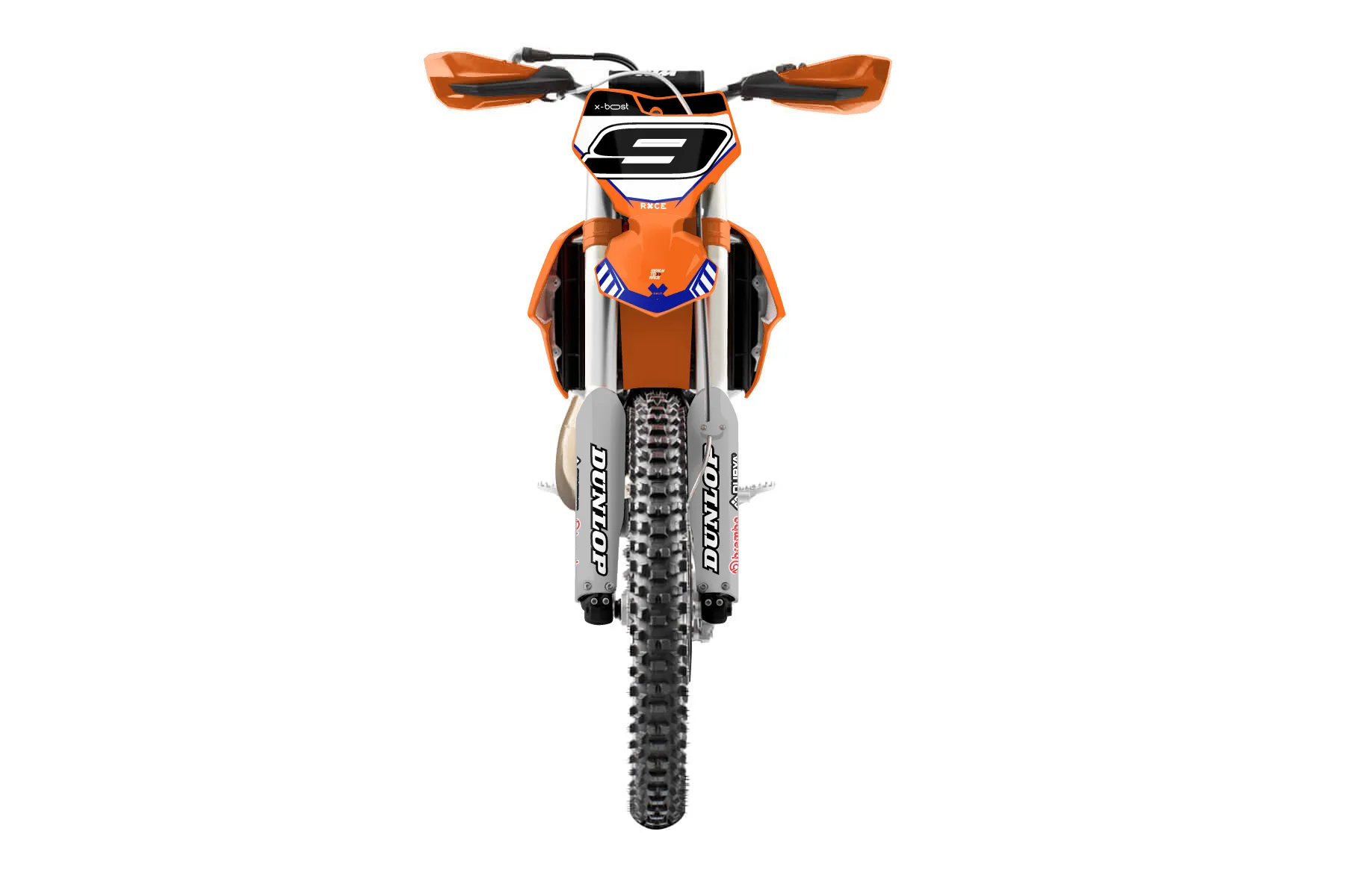 «Showtime» — готовый комплект графики серии Maverick для KTM Offroad Graphic Kit KTM XC 150 2016. В комплекте: графика на бак и боковые облицовки, крылья (переднее и заднее), передний щиток, номерные таблички, защита вилки. Материал: ПВХ-винил 80 мкр с холодной ламинацией 300 мкр, общая толщина 380 мкр; покрытие глянцевое или матовое на выбор. Устойчив к UV-излучению, воде, бензину и мойке высокого давления. Клей акриловый на сольвентной основе — постоянный, для гибких пластиков. На простых поверхностях монтируется без нагрева; для сложных изгибов рекомендуем фен. Этот пресет можно заказать как есть или взять за основу в конструкторе: поменять цвета, добавить стартовый номер и свой бренд. Производство — 3–5 рабочих дней, доставка по России СДЭКом или Почтой, по СНГ — курьерскими службами.