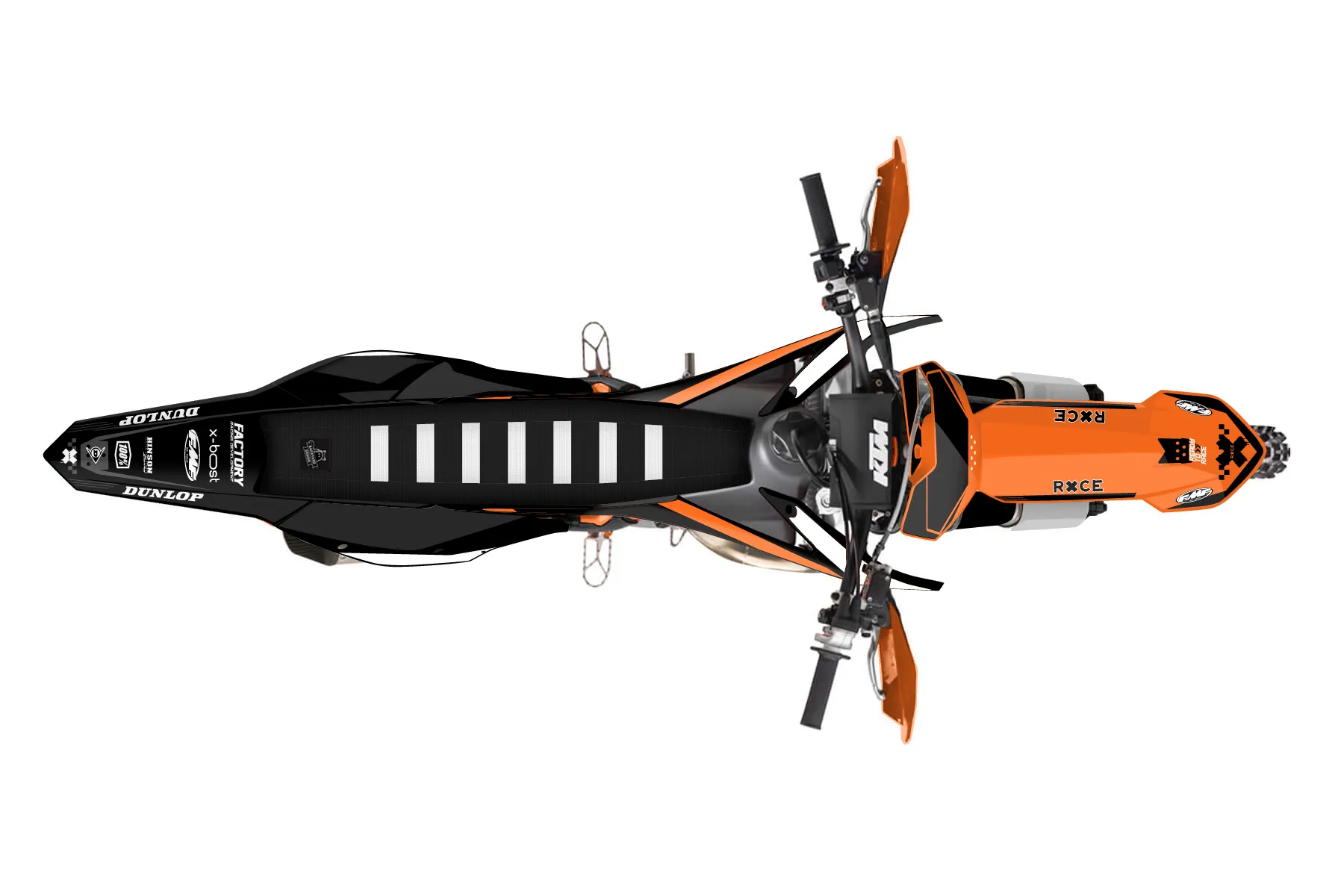 «RacerX» — готовый комплект графики серии Staple для KTM Offroad Graphic Kit KTM XC 150 2016. В комплекте: графика на бак и боковые облицовки, крылья (переднее и заднее), передний щиток, номерные таблички, защита вилки. Материал: ПВХ-винил 80 мкр с холодной ламинацией 300 мкр, общая толщина 380 мкр; покрытие глянцевое или матовое на выбор. Устойчив к UV-излучению, воде, бензину и мойке высокого давления. Клей акриловый на сольвентной основе — постоянный, для гибких пластиков. На простых поверхностях монтируется без нагрева; для сложных изгибов рекомендуем фен. Этот пресет можно заказать как есть или взять за основу в конструкторе: поменять цвета, добавить стартовый номер и свой бренд. Производство — 3–5 рабочих дней, доставка по России СДЭКом или Почтой, по СНГ — курьерскими службами.
