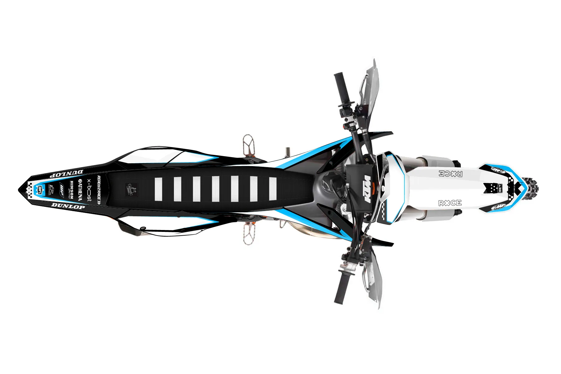 «Rule» — готовый комплект графики серии Staple для KTM Offroad Graphic Kit KTM XC 150 2016. В комплекте: графика на бак и боковые облицовки, крылья (переднее и заднее), передний щиток, номерные таблички, защита вилки. Материал: ПВХ-винил 80 мкр с холодной ламинацией 300 мкр, общая толщина 380 мкр; покрытие глянцевое или матовое на выбор. Устойчив к UV-излучению, воде, бензину и мойке высокого давления. Клей акриловый на сольвентной основе — постоянный, для гибких пластиков. На простых поверхностях монтируется без нагрева; для сложных изгибов рекомендуем фен. Этот пресет можно заказать как есть или взять за основу в конструкторе: поменять цвета, добавить стартовый номер и свой бренд. Производство — 3–5 рабочих дней, доставка по России СДЭКом или Почтой, по СНГ — курьерскими службами.