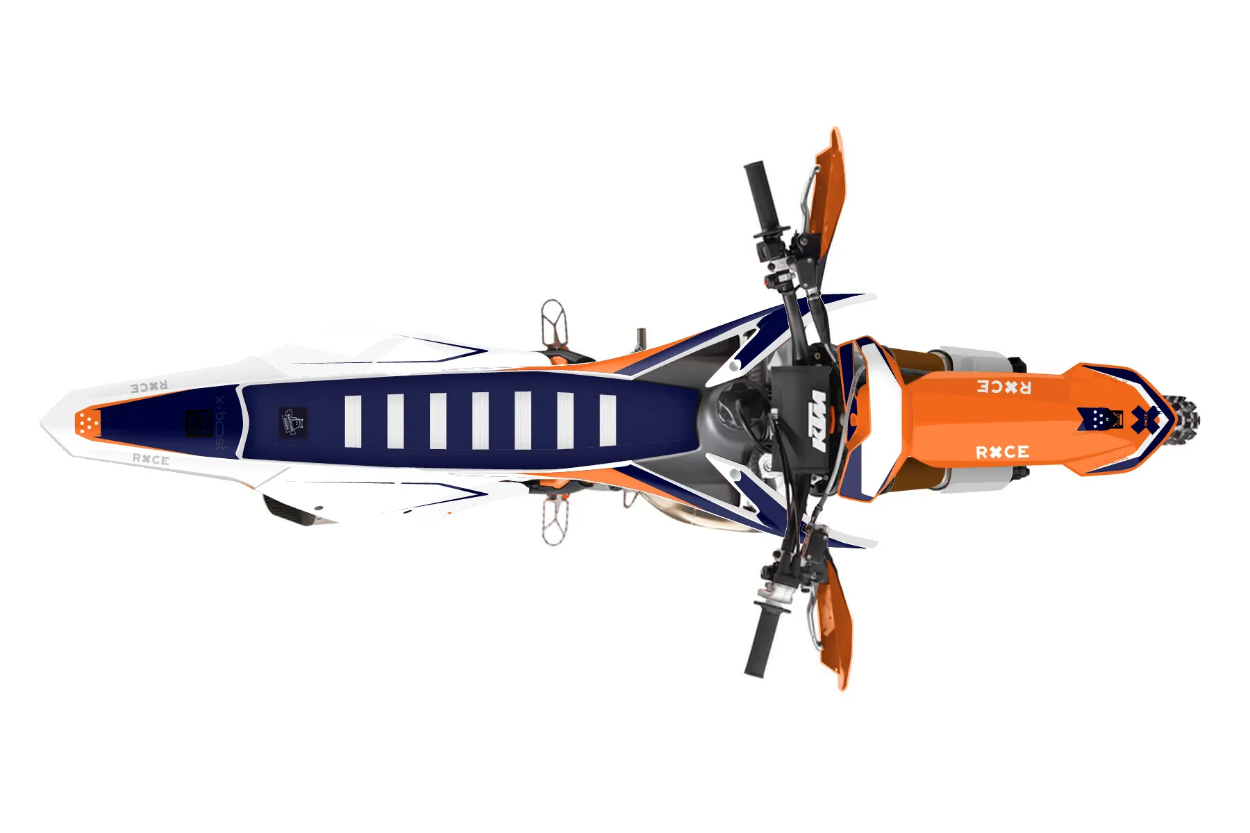 «Wrapper» — готовый комплект графики серии Staple для KTM Offroad Graphic Kit KTM XC 150 2016. В комплекте: графика на бак и боковые облицовки, крылья (переднее и заднее), передний щиток, номерные таблички, защита вилки. Материал: ПВХ-винил 80 мкр с холодной ламинацией 300 мкр, общая толщина 380 мкр; покрытие глянцевое или матовое на выбор. Устойчив к UV-излучению, воде, бензину и мойке высокого давления. Клей акриловый на сольвентной основе — постоянный, для гибких пластиков. На простых поверхностях монтируется без нагрева; для сложных изгибов рекомендуем фен. Этот пресет можно заказать как есть или взять за основу в конструкторе: поменять цвета, добавить стартовый номер и свой бренд. Производство — 3–5 рабочих дней, доставка по России СДЭКом или Почтой, по СНГ — курьерскими службами.