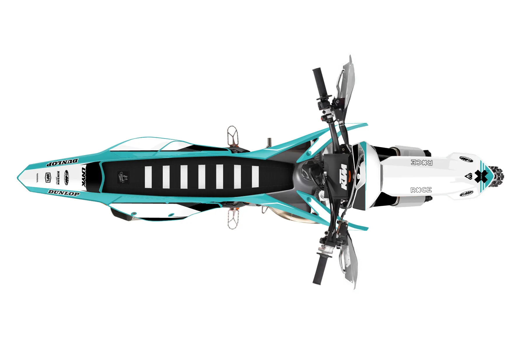«Dynamic» — готовый комплект графики серии Untucked для KTM Offroad Graphic Kit KTM XC 150 2016. В комплекте: графика на бак и боковые облицовки, крылья (переднее и заднее), передний щиток, номерные таблички, защита вилки. Материал: ПВХ-винил 80 мкр с холодной ламинацией 300 мкр, общая толщина 380 мкр; покрытие глянцевое или матовое на выбор. Устойчив к UV-излучению, воде, бензину и мойке высокого давления. Клей акриловый на сольвентной основе — постоянный, для гибких пластиков. На простых поверхностях монтируется без нагрева; для сложных изгибов рекомендуем фен. Этот пресет можно заказать как есть или взять за основу в конструкторе: поменять цвета, добавить стартовый номер и свой бренд. Производство — 3–5 рабочих дней, доставка по России СДЭКом или Почтой, по СНГ — курьерскими службами.
