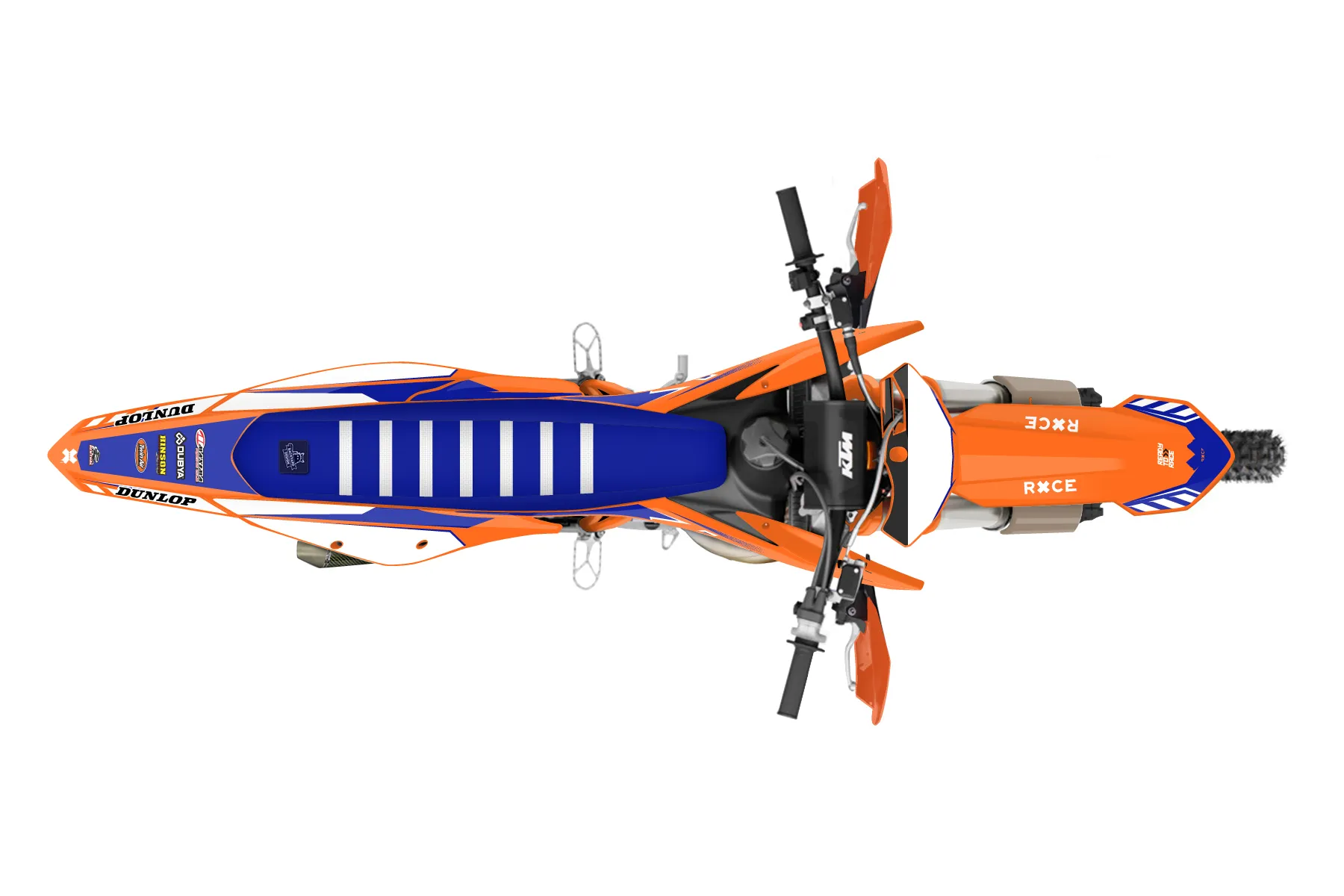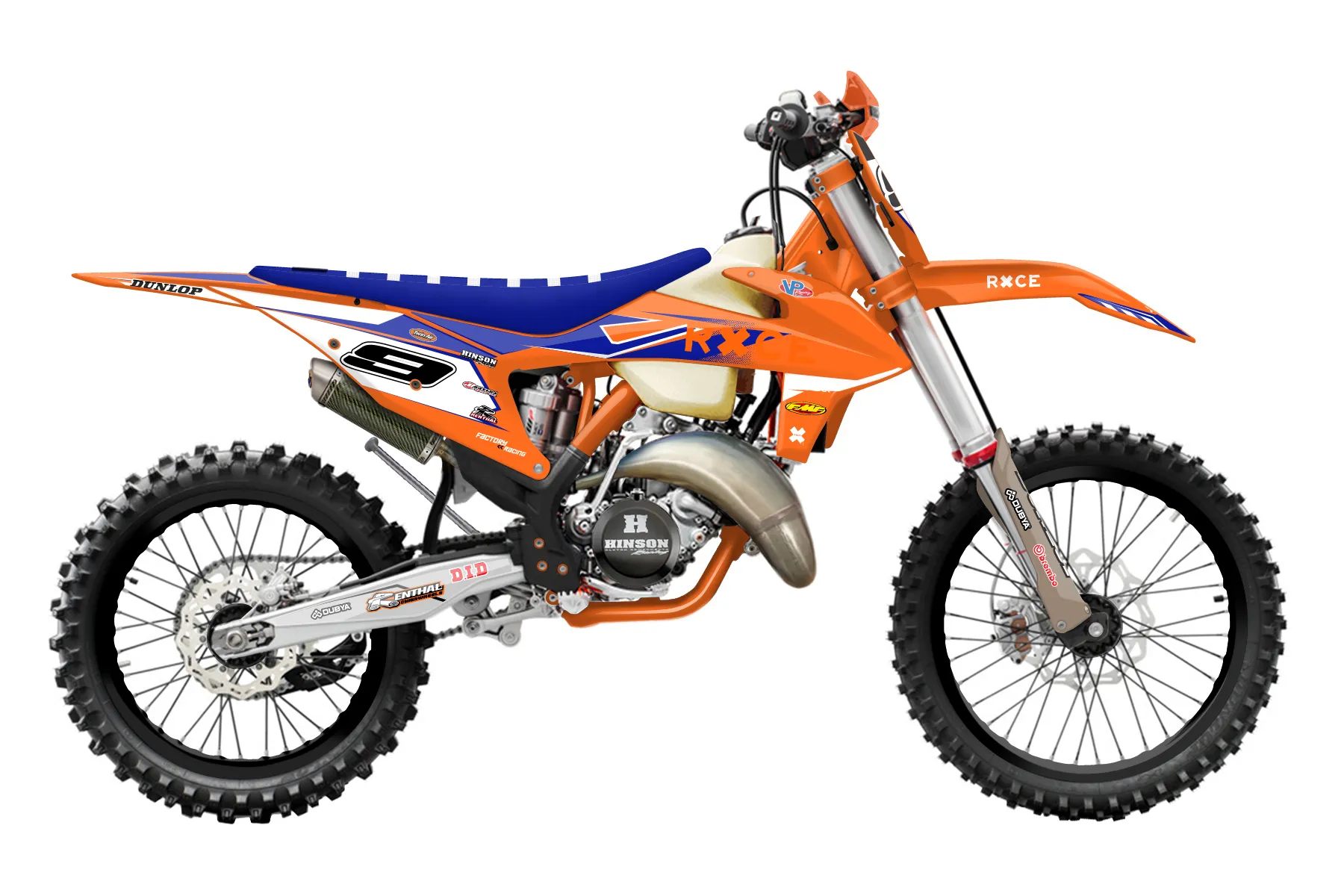 «Showtime» — готовый комплект графики серии Maverick для KTM Offroad Graphic Kit KTM XC 150 2019. В комплекте: графика на бак и боковые облицовки, крылья (переднее и заднее), передний щиток, номерные таблички, защита вилки. Материал: ПВХ-винил 80 мкр с холодной ламинацией 300 мкр, общая толщина 380 мкр; покрытие глянцевое или матовое на выбор. Устойчив к UV-излучению, воде, бензину и мойке высокого давления. Клей акриловый на сольвентной основе — постоянный, для гибких пластиков. На простых поверхностях монтируется без нагрева; для сложных изгибов рекомендуем фен. Этот пресет можно заказать как есть или взять за основу в конструкторе: поменять цвета, добавить стартовый номер и свой бренд. Производство — 3–5 рабочих дней, доставка по России СДЭКом или Почтой, по СНГ — курьерскими службами.