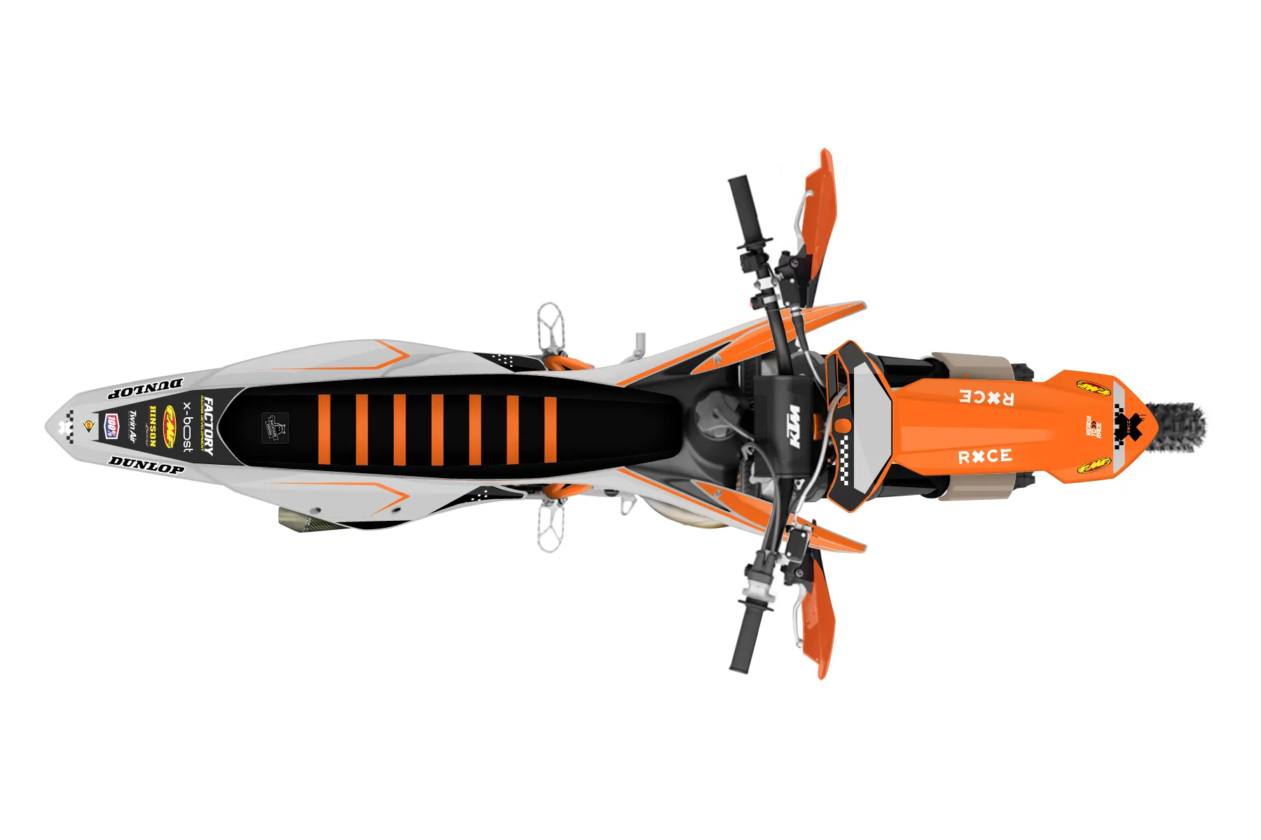 «Draft» — готовый комплект графики серии Staple для KTM Offroad Graphic Kit KTM XC 150 2019. В комплекте: графика на бак и боковые облицовки, крылья (переднее и заднее), передний щиток, номерные таблички, защита вилки. Материал: ПВХ-винил 80 мкр с холодной ламинацией 300 мкр, общая толщина 380 мкр; покрытие глянцевое или матовое на выбор. Устойчив к UV-излучению, воде, бензину и мойке высокого давления. Клей акриловый на сольвентной основе — постоянный, для гибких пластиков. На простых поверхностях монтируется без нагрева; для сложных изгибов рекомендуем фен. Этот пресет можно заказать как есть или взять за основу в конструкторе: поменять цвета, добавить стартовый номер и свой бренд. Производство — 3–5 рабочих дней, доставка по России СДЭКом или Почтой, по СНГ — курьерскими службами.