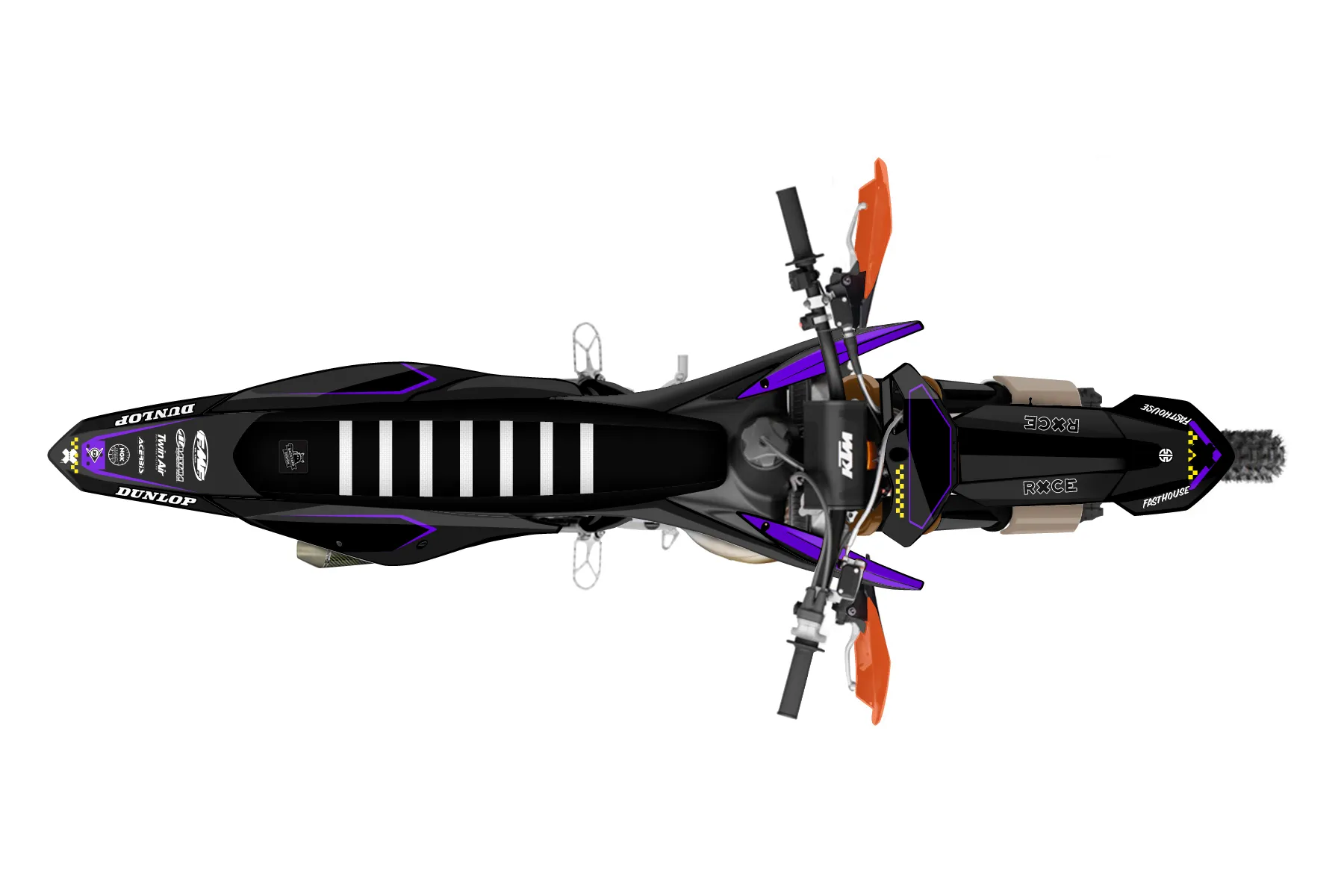 «Virtual» — готовый комплект графики серии Staple для KTM Offroad Graphic Kit KTM XC 150 2019. В комплекте: графика на бак и боковые облицовки, крылья (переднее и заднее), передний щиток, номерные таблички, защита вилки. Материал: ПВХ-винил 80 мкр с холодной ламинацией 300 мкр, общая толщина 380 мкр; покрытие глянцевое или матовое на выбор. Устойчив к UV-излучению, воде, бензину и мойке высокого давления. Клей акриловый на сольвентной основе — постоянный, для гибких пластиков. На простых поверхностях монтируется без нагрева; для сложных изгибов рекомендуем фен. Этот пресет можно заказать как есть или взять за основу в конструкторе: поменять цвета, добавить стартовый номер и свой бренд. Производство — 3–5 рабочих дней, доставка по России СДЭКом или Почтой, по СНГ — курьерскими службами.