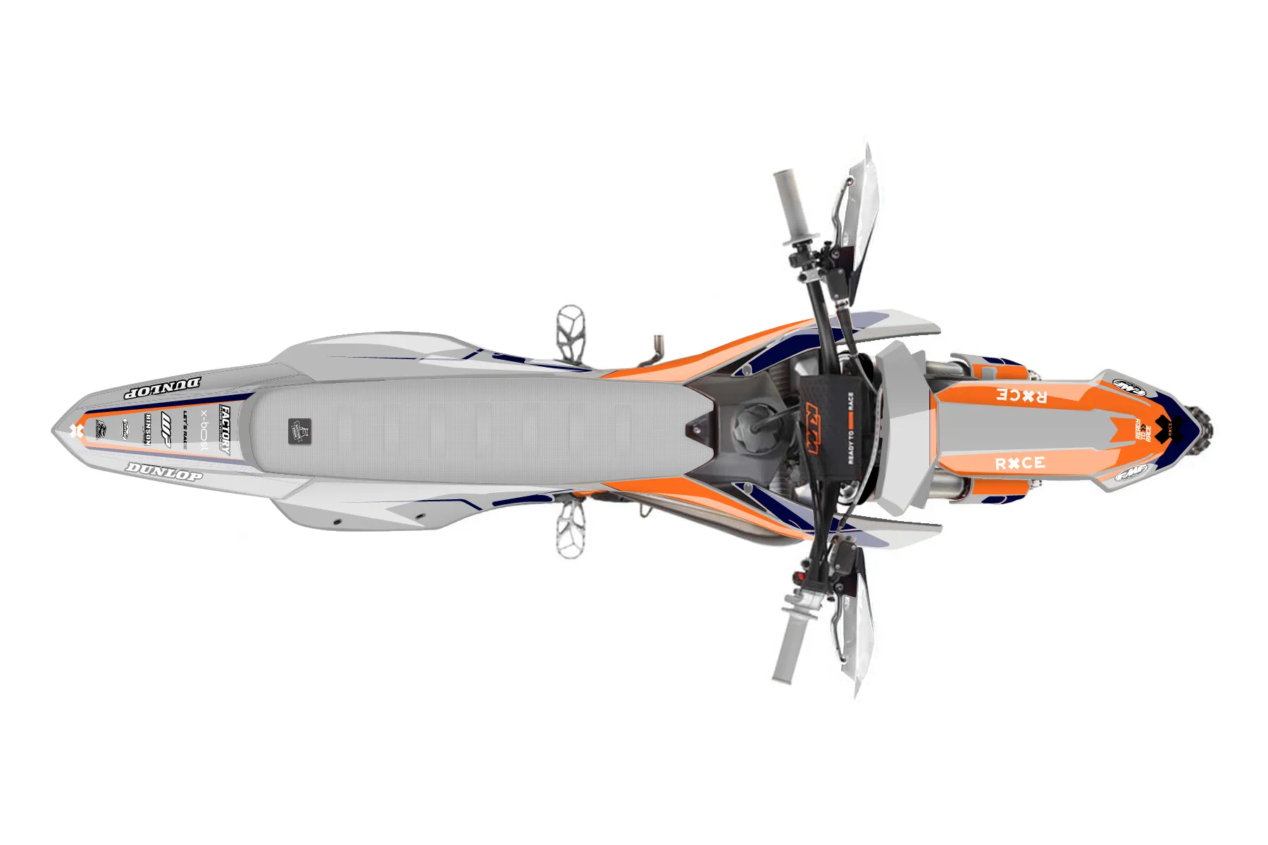 «Ride» — готовый комплект графики серии Flow для KTM Offroad Graphic Kit KTM XC 150 2023. В комплекте: графика на бак и боковые облицовки, крылья (переднее и заднее), передний щиток, номерные таблички, защита вилки. Материал: ПВХ-винил 80 мкр с холодной ламинацией 300 мкр, общая толщина 380 мкр; покрытие глянцевое или матовое на выбор. Устойчив к UV-излучению, воде, бензину и мойке высокого давления. Клей акриловый на сольвентной основе — постоянный, для гибких пластиков. На простых поверхностях монтируется без нагрева; для сложных изгибов рекомендуем фен. Этот пресет можно заказать как есть или взять за основу в конструкторе: поменять цвета, добавить стартовый номер и свой бренд. Производство — 3–5 рабочих дней, доставка по России СДЭКом или Почтой, по СНГ — курьерскими службами.