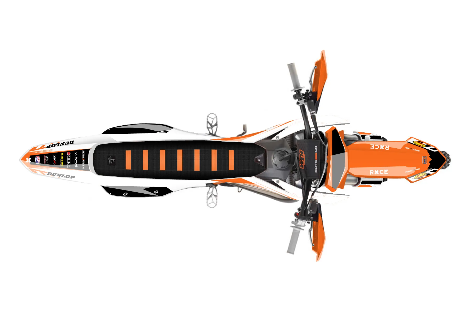«GoPro» — готовый комплект графики серии Maverick для KTM Offroad Graphic Kit KTM XC 150 2023. В комплекте: графика на бак и боковые облицовки, крылья (переднее и заднее), передний щиток, номерные таблички, защита вилки. Материал: ПВХ-винил 80 мкр с холодной ламинацией 300 мкр, общая толщина 380 мкр; покрытие глянцевое или матовое на выбор. Устойчив к UV-излучению, воде, бензину и мойке высокого давления. Клей акриловый на сольвентной основе — постоянный, для гибких пластиков. На простых поверхностях монтируется без нагрева; для сложных изгибов рекомендуем фен. Этот пресет можно заказать как есть или взять за основу в конструкторе: поменять цвета, добавить стартовый номер и свой бренд. Производство — 3–5 рабочих дней, доставка по России СДЭКом или Почтой, по СНГ — курьерскими службами.