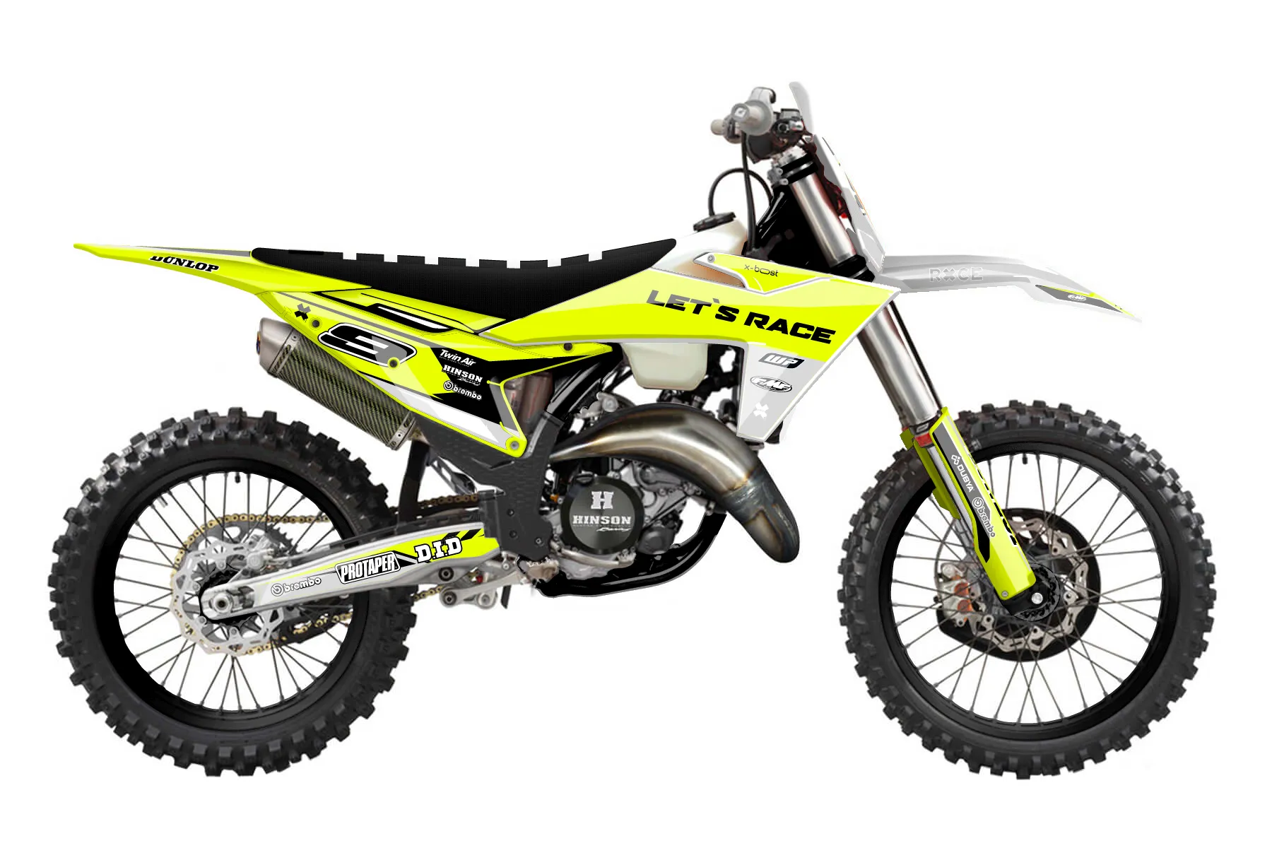 «Ryder Neon» — готовый комплект графики серии Maverick для KTM Offroad Graphic Kit KTM XC 150 2023. В комплекте: графика на бак и боковые облицовки, крылья (переднее и заднее), передний щиток, номерные таблички, защита вилки. Материал: ПВХ-винил 80 мкр с холодной ламинацией 300 мкр, общая толщина 380 мкр; покрытие глянцевое или матовое на выбор. Устойчив к UV-излучению, воде, бензину и мойке высокого давления. Клей акриловый на сольвентной основе — постоянный, для гибких пластиков. На простых поверхностях монтируется без нагрева; для сложных изгибов рекомендуем фен. Этот пресет можно заказать как есть или взять за основу в конструкторе: поменять цвета, добавить стартовый номер и свой бренд. Производство — 3–5 рабочих дней, доставка по России СДЭКом или Почтой, по СНГ — курьерскими службами.