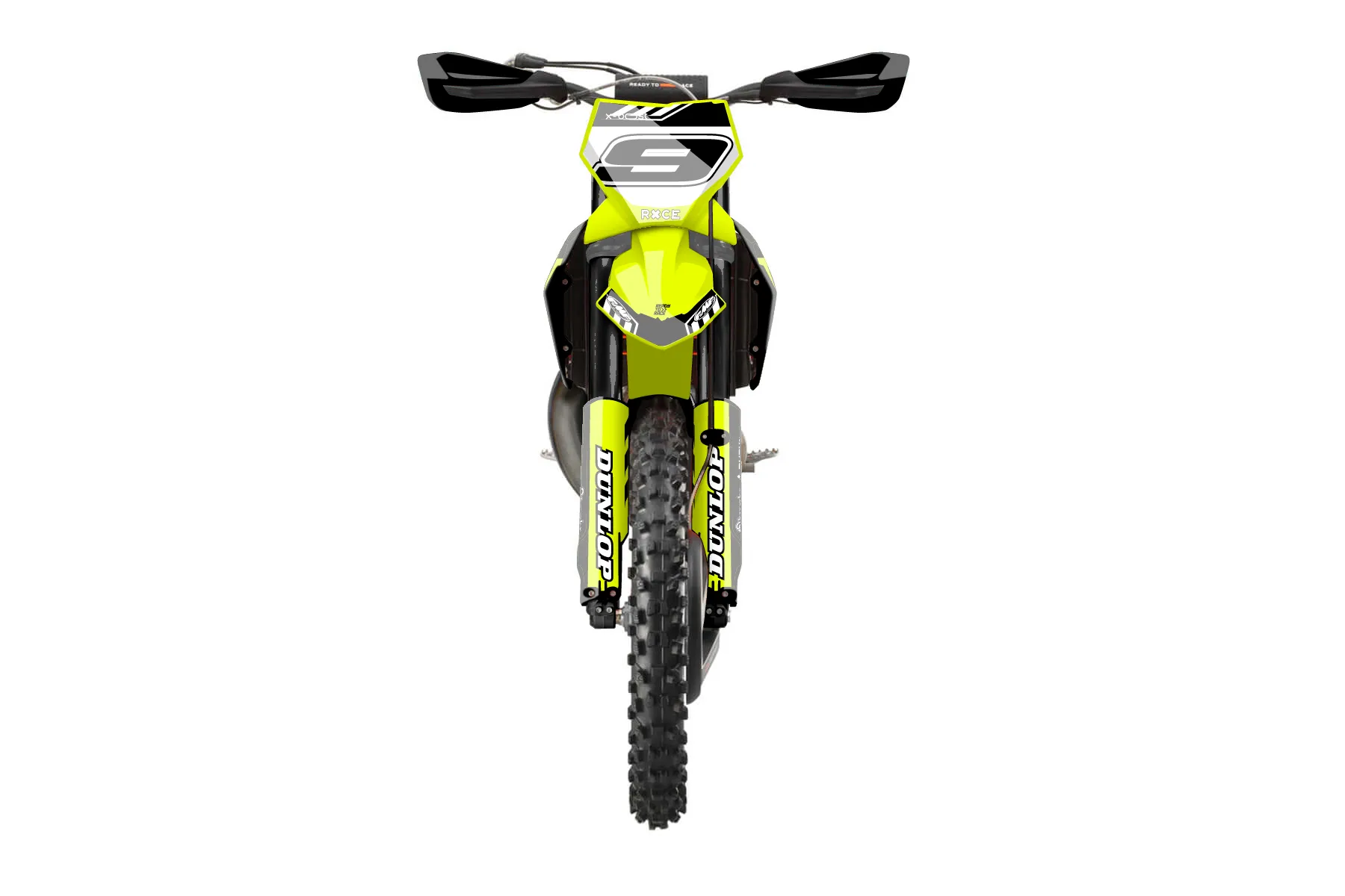 «Volt Neon» — готовый комплект графики серии Maverick для KTM Offroad Graphic Kit KTM XC 150 2023. В комплекте: графика на бак и боковые облицовки, крылья (переднее и заднее), передний щиток, номерные таблички, защита вилки. Материал: ПВХ-винил 80 мкр с холодной ламинацией 300 мкр, общая толщина 380 мкр; покрытие глянцевое или матовое на выбор. Устойчив к UV-излучению, воде, бензину и мойке высокого давления. Клей акриловый на сольвентной основе — постоянный, для гибких пластиков. На простых поверхностях монтируется без нагрева; для сложных изгибов рекомендуем фен. Этот пресет можно заказать как есть или взять за основу в конструкторе: поменять цвета, добавить стартовый номер и свой бренд. Производство — 3–5 рабочих дней, доставка по России СДЭКом или Почтой, по СНГ — курьерскими службами.