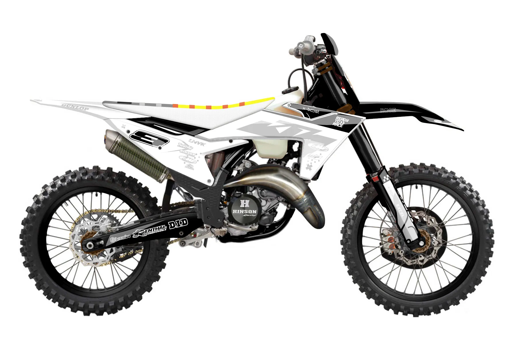 «Charge» — готовый комплект графики серии Staple для KTM Offroad Graphic Kit KTM XC 150 2023. В комплекте: графика на бак и боковые облицовки, крылья (переднее и заднее), передний щиток, номерные таблички, защита вилки. Материал: ПВХ-винил 80 мкр с холодной ламинацией 300 мкр, общая толщина 380 мкр; покрытие глянцевое или матовое на выбор. Устойчив к UV-излучению, воде, бензину и мойке высокого давления. Клей акриловый на сольвентной основе — постоянный, для гибких пластиков. На простых поверхностях монтируется без нагрева; для сложных изгибов рекомендуем фен. Этот пресет можно заказать как есть или взять за основу в конструкторе: поменять цвета, добавить стартовый номер и свой бренд. Производство — 3–5 рабочих дней, доставка по России СДЭКом или Почтой, по СНГ — курьерскими службами.