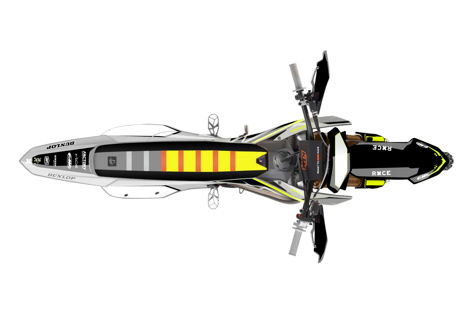 «Lusty Neon» — готовый комплект графики серии Staple для KTM Offroad Graphic Kit KTM XC 150 2023. В комплекте: графика на бак и боковые облицовки, крылья (переднее и заднее), передний щиток, номерные таблички, защита вилки. Материал: ПВХ-винил 80 мкр с холодной ламинацией 300 мкр, общая толщина 380 мкр; покрытие глянцевое или матовое на выбор. Устойчив к UV-излучению, воде, бензину и мойке высокого давления. Клей акриловый на сольвентной основе — постоянный, для гибких пластиков. На простых поверхностях монтируется без нагрева; для сложных изгибов рекомендуем фен. Этот пресет можно заказать как есть или взять за основу в конструкторе: поменять цвета, добавить стартовый номер и свой бренд. Производство — 3–5 рабочих дней, доставка по России СДЭКом или Почтой, по СНГ — курьерскими службами.