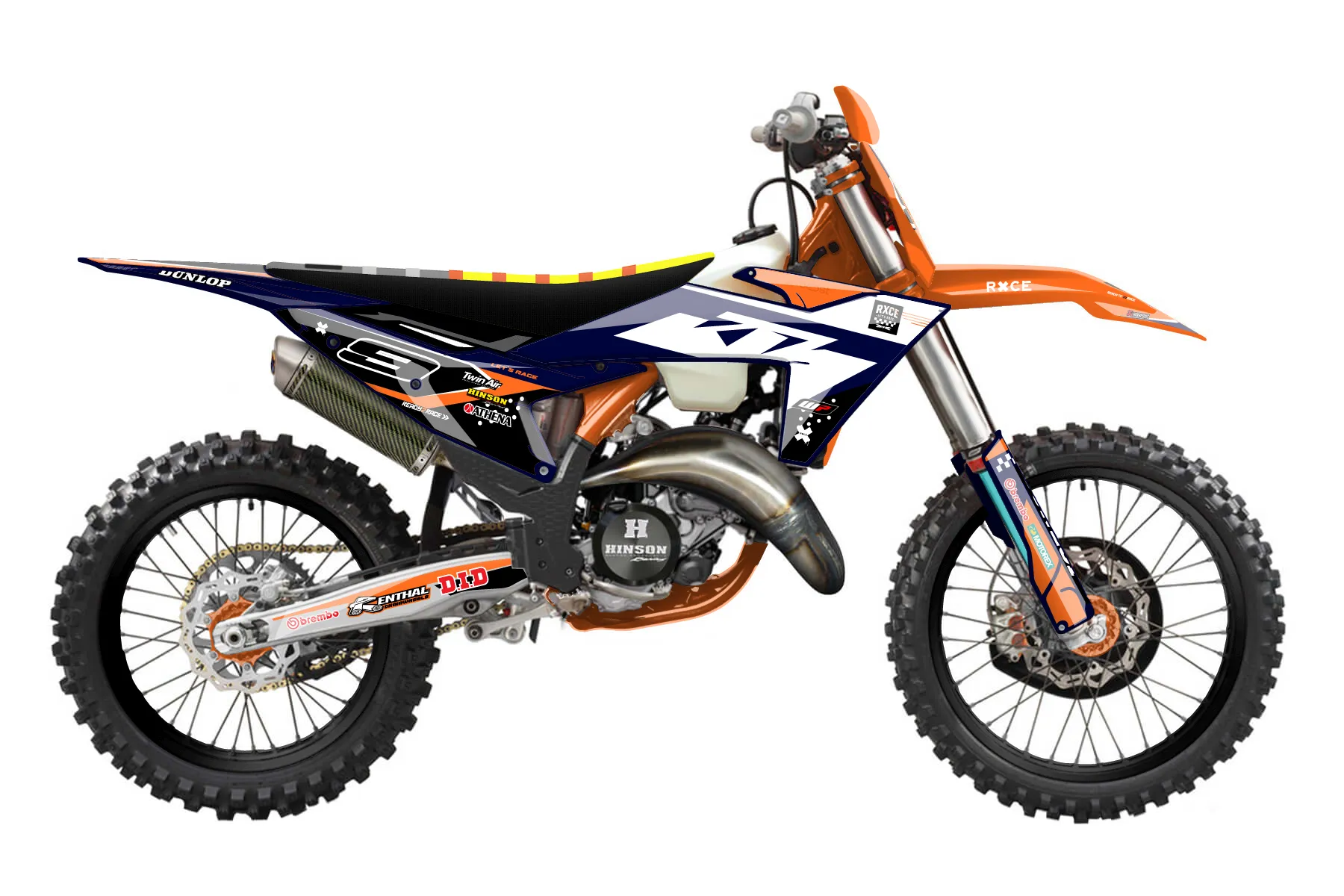 «Rage» — готовый комплект графики серии Staple для KTM Offroad Graphic Kit KTM XC 150 2023. В комплекте: графика на бак и боковые облицовки, крылья (переднее и заднее), передний щиток, номерные таблички, защита вилки. Материал: ПВХ-винил 80 мкр с холодной ламинацией 300 мкр, общая толщина 380 мкр; покрытие глянцевое или матовое на выбор. Устойчив к UV-излучению, воде, бензину и мойке высокого давления. Клей акриловый на сольвентной основе — постоянный, для гибких пластиков. На простых поверхностях монтируется без нагрева; для сложных изгибов рекомендуем фен. Этот пресет можно заказать как есть или взять за основу в конструкторе: поменять цвета, добавить стартовый номер и свой бренд. Производство — 3–5 рабочих дней, доставка по России СДЭКом или Почтой, по СНГ — курьерскими службами.
