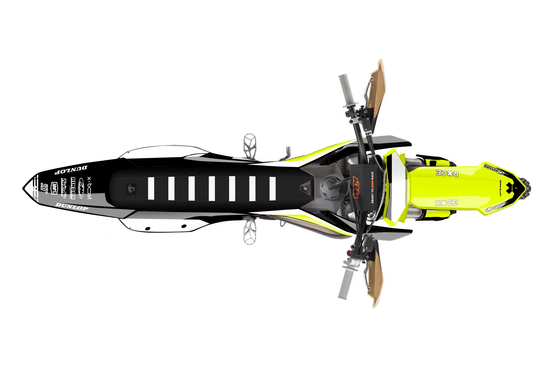 «Chill Fluorscent» — готовый комплект графики серии Untucked для KTM Offroad Graphic Kit KTM XC 150 2023. В комплекте: графика на бак и боковые облицовки, крылья (переднее и заднее), передний щиток, номерные таблички, защита вилки. Материал: ПВХ-винил 80 мкр с холодной ламинацией 300 мкр, общая толщина 380 мкр; покрытие глянцевое или матовое на выбор. Устойчив к UV-излучению, воде, бензину и мойке высокого давления. Клей акриловый на сольвентной основе — постоянный, для гибких пластиков. На простых поверхностях монтируется без нагрева; для сложных изгибов рекомендуем фен. Этот пресет можно заказать как есть или взять за основу в конструкторе: поменять цвета, добавить стартовый номер и свой бренд. Производство — 3–5 рабочих дней, доставка по России СДЭКом или Почтой, по СНГ — курьерскими службами.