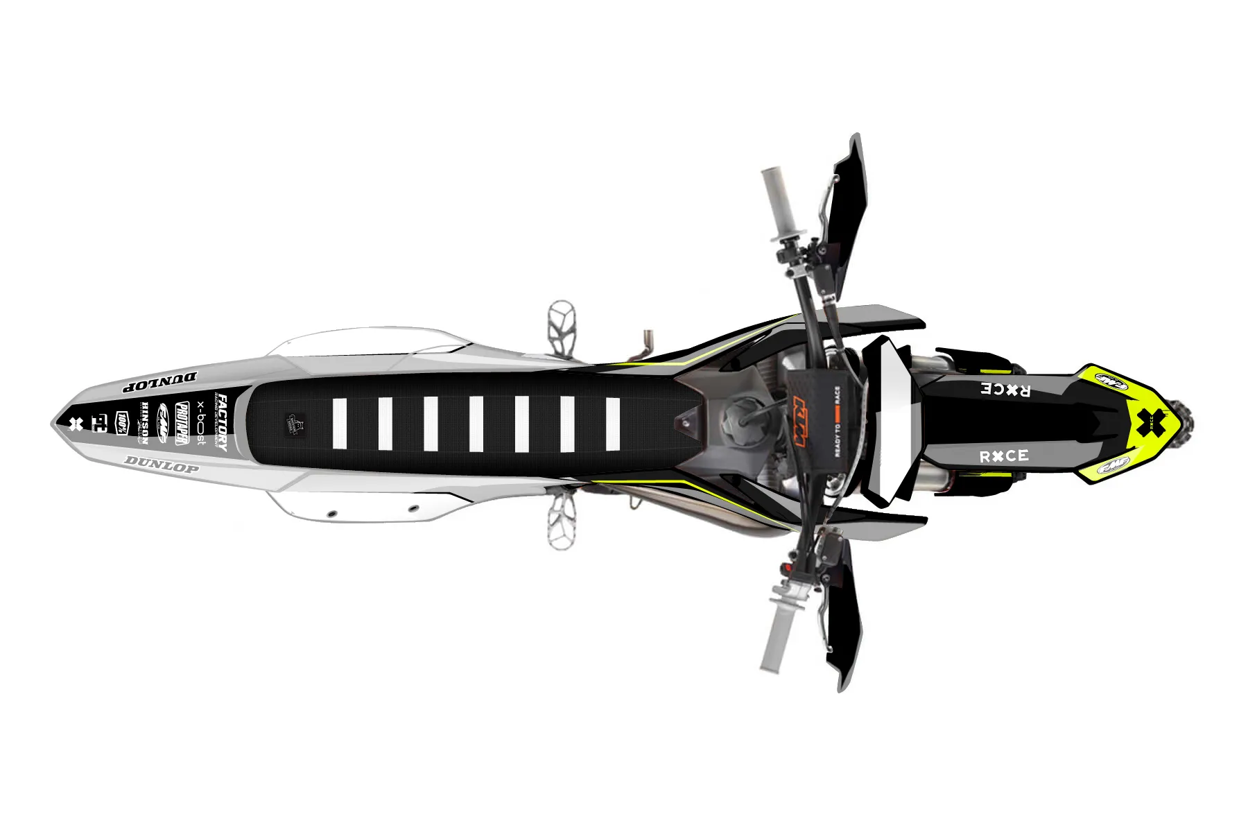 «Vivid Neon» — готовый комплект графики серии Untucked для KTM Offroad Graphic Kit KTM XC 150 2023. В комплекте: графика на бак и боковые облицовки, крылья (переднее и заднее), передний щиток, номерные таблички, защита вилки. Материал: ПВХ-винил 80 мкр с холодной ламинацией 300 мкр, общая толщина 380 мкр; покрытие глянцевое или матовое на выбор. Устойчив к UV-излучению, воде, бензину и мойке высокого давления. Клей акриловый на сольвентной основе — постоянный, для гибких пластиков. На простых поверхностях монтируется без нагрева; для сложных изгибов рекомендуем фен. Этот пресет можно заказать как есть или взять за основу в конструкторе: поменять цвета, добавить стартовый номер и свой бренд. Производство — 3–5 рабочих дней, доставка по России СДЭКом или Почтой, по СНГ — курьерскими службами.