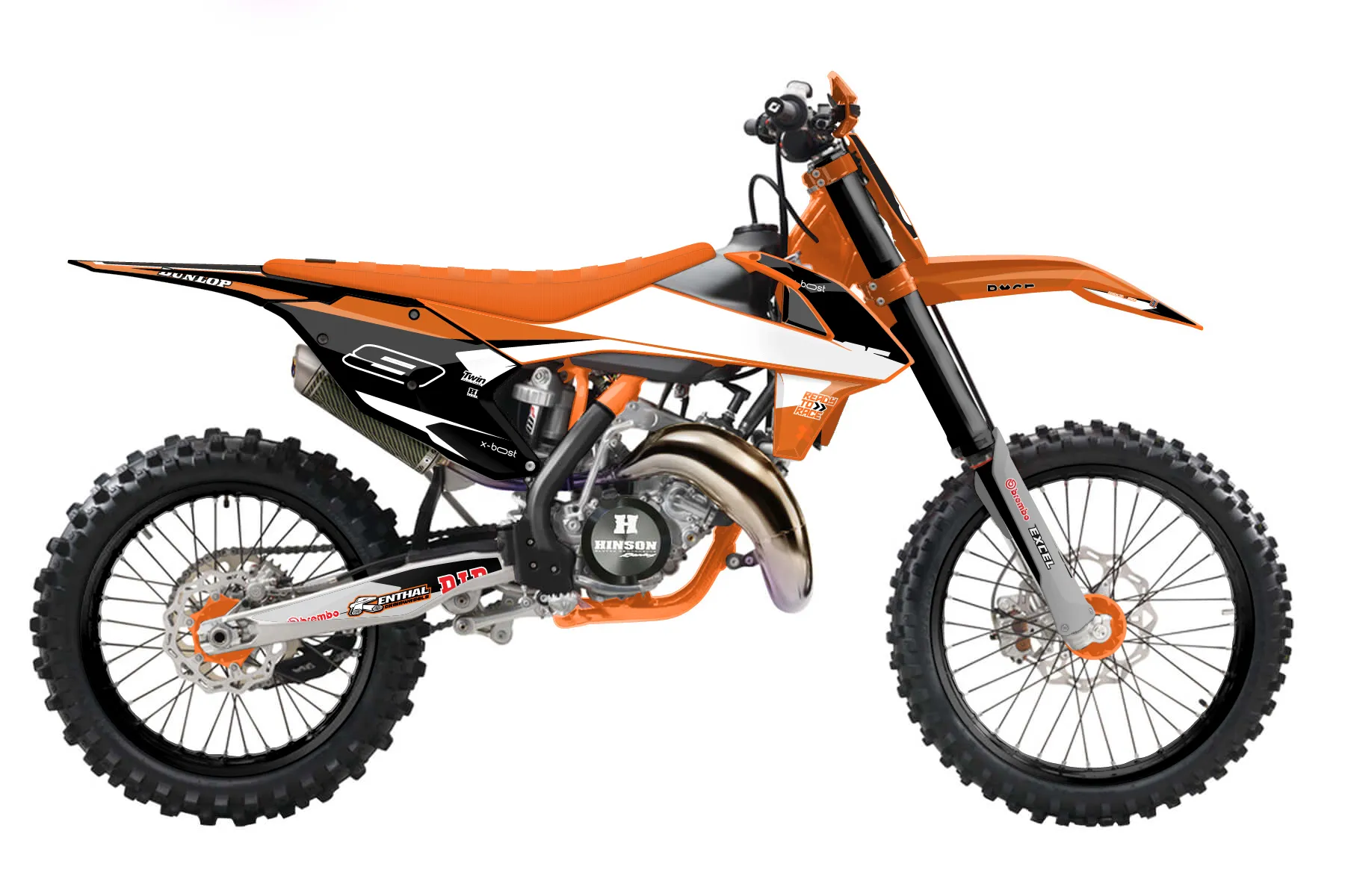 «Race» — готовый комплект графики серии Flow для KTM Offroad Graphic Kit KTM XC 250 2016. В комплекте: графика на бак и боковые облицовки, крылья (переднее и заднее), передний щиток, номерные таблички, защита вилки. Материал: ПВХ-винил 80 мкр с холодной ламинацией 300 мкр, общая толщина 380 мкр; покрытие глянцевое или матовое на выбор. Устойчив к UV-излучению, воде, бензину и мойке высокого давления. Клей акриловый на сольвентной основе — постоянный, для гибких пластиков. На простых поверхностях монтируется без нагрева; для сложных изгибов рекомендуем фен. Этот пресет можно заказать как есть или взять за основу в конструкторе: поменять цвета, добавить стартовый номер и свой бренд. Производство — 3–5 рабочих дней, доставка по России СДЭКом или Почтой, по СНГ — курьерскими службами.