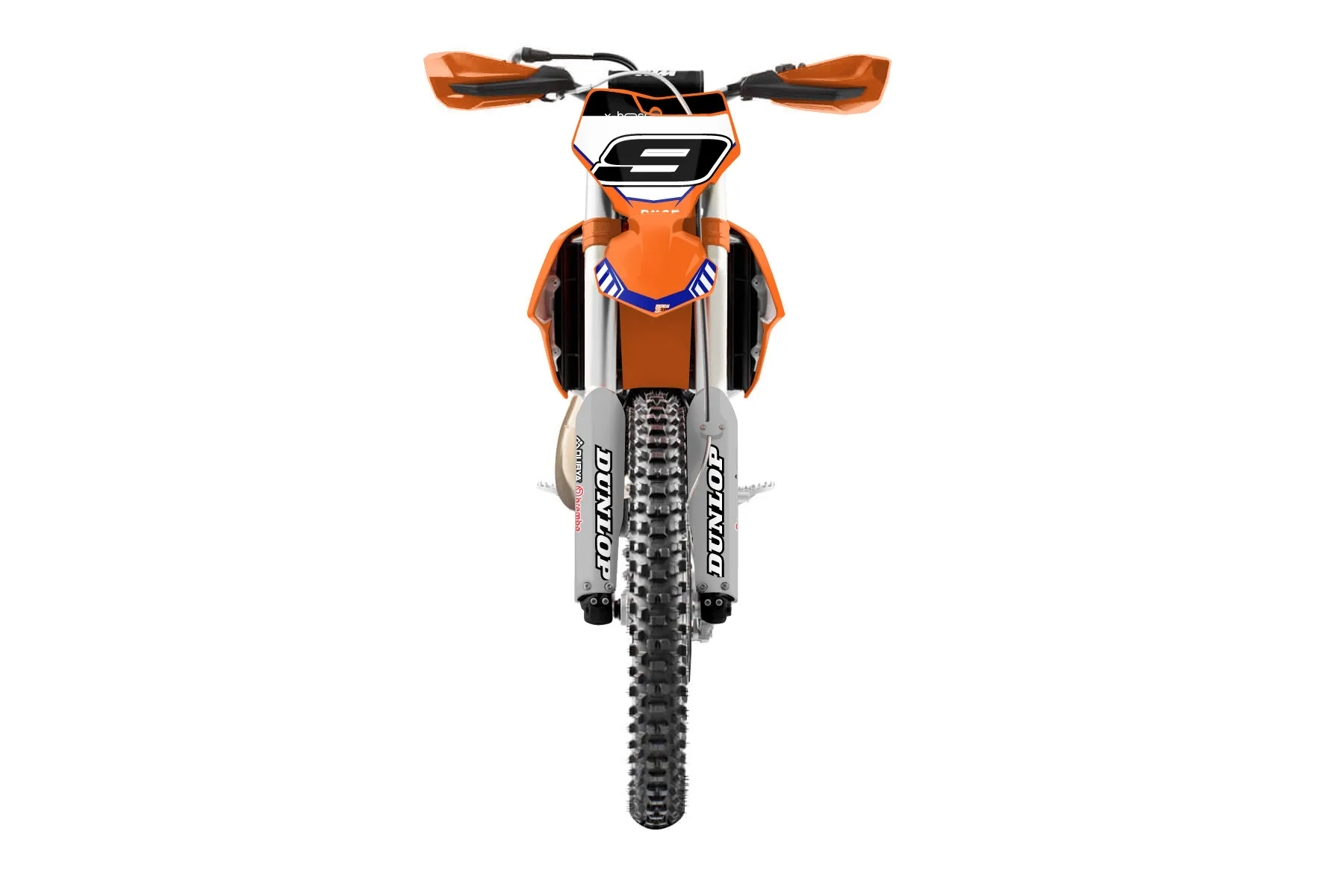 «Showtime» — готовый комплект графики серии Maverick для KTM Offroad Graphic Kit KTM XC 250 2016. В комплекте: графика на бак и боковые облицовки, крылья (переднее и заднее), передний щиток, номерные таблички, защита вилки. Материал: ПВХ-винил 80 мкр с холодной ламинацией 300 мкр, общая толщина 380 мкр; покрытие глянцевое или матовое на выбор. Устойчив к UV-излучению, воде, бензину и мойке высокого давления. Клей акриловый на сольвентной основе — постоянный, для гибких пластиков. На простых поверхностях монтируется без нагрева; для сложных изгибов рекомендуем фен. Этот пресет можно заказать как есть или взять за основу в конструкторе: поменять цвета, добавить стартовый номер и свой бренд. Производство — 3–5 рабочих дней, доставка по России СДЭКом или Почтой, по СНГ — курьерскими службами.