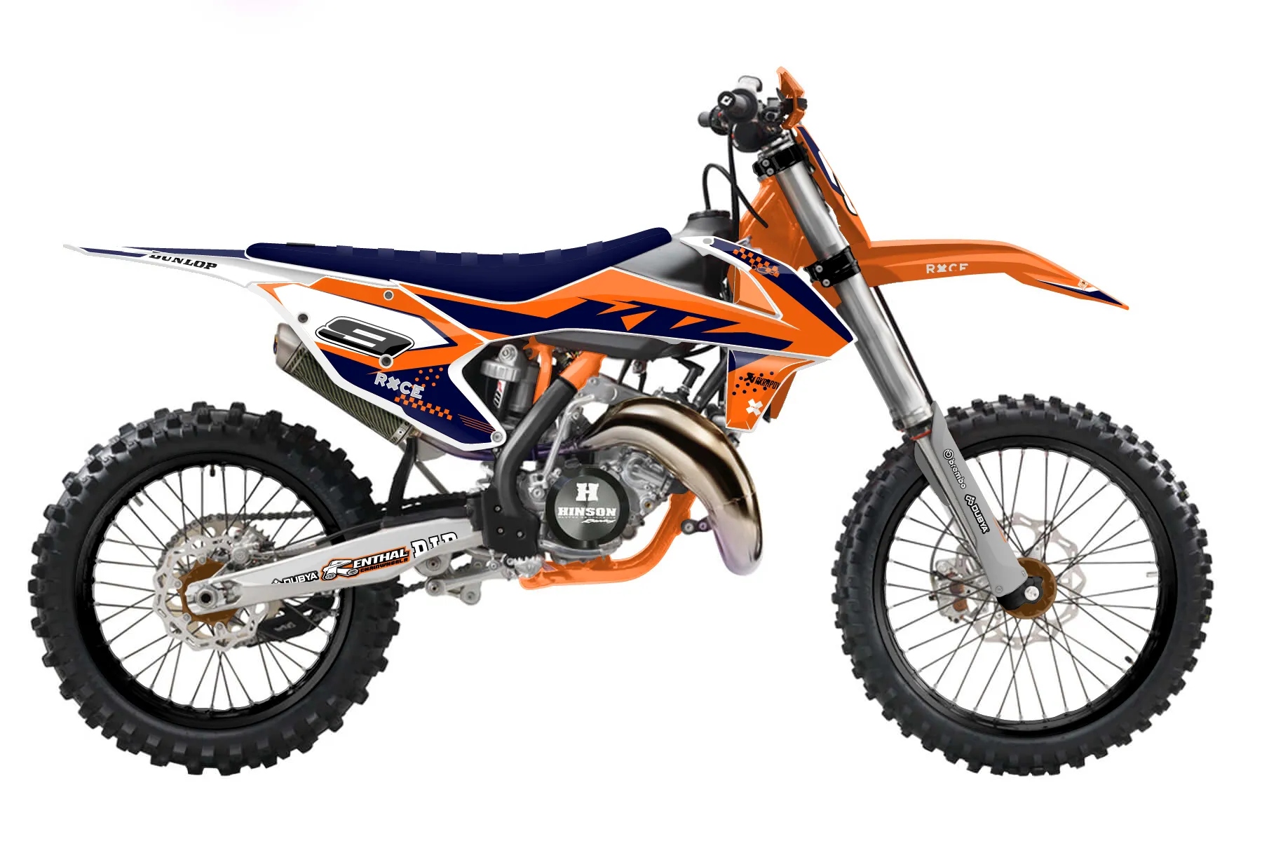 «CustomDesign#1» — готовый комплект графики серии Staple для KTM Offroad Graphic Kit KTM XC 250 2016. В комплекте: графика на бак и боковые облицовки, крылья (переднее и заднее), передний щиток, номерные таблички, защита вилки. Материал: ПВХ-винил 80 мкр с холодной ламинацией 300 мкр, общая толщина 380 мкр; покрытие глянцевое или матовое на выбор. Устойчив к UV-излучению, воде, бензину и мойке высокого давления. Клей акриловый на сольвентной основе — постоянный, для гибких пластиков. На простых поверхностях монтируется без нагрева; для сложных изгибов рекомендуем фен. Этот пресет можно заказать как есть или взять за основу в конструкторе: поменять цвета, добавить стартовый номер и свой бренд. Производство — 3–5 рабочих дней, доставка по России СДЭКом или Почтой, по СНГ — курьерскими службами.