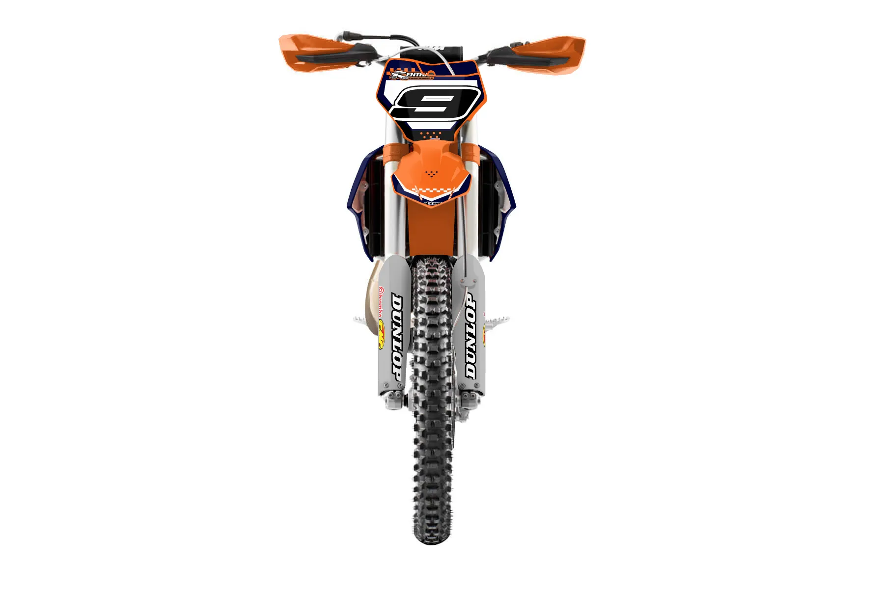 «KTM 250xc» — готовый комплект графики серии Staple для KTM Offroad Graphic Kit KTM XC 250 2016. В комплекте: графика на бак и боковые облицовки, крылья (переднее и заднее), передний щиток, номерные таблички, защита вилки. Материал: ПВХ-винил 80 мкр с холодной ламинацией 300 мкр, общая толщина 380 мкр; покрытие глянцевое или матовое на выбор. Устойчив к UV-излучению, воде, бензину и мойке высокого давления. Клей акриловый на сольвентной основе — постоянный, для гибких пластиков. На простых поверхностях монтируется без нагрева; для сложных изгибов рекомендуем фен. Этот пресет можно заказать как есть или взять за основу в конструкторе: поменять цвета, добавить стартовый номер и свой бренд. Производство — 3–5 рабочих дней, доставка по России СДЭКом или Почтой, по СНГ — курьерскими службами.