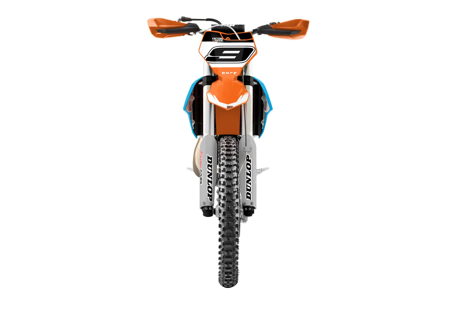 «Electrical» — готовый комплект графики серии Untucked для KTM Offroad Graphic Kit KTM XC 250 2016. В комплекте: графика на бак и боковые облицовки, крылья (переднее и заднее), передний щиток, номерные таблички, защита вилки. Материал: ПВХ-винил 80 мкр с холодной ламинацией 300 мкр, общая толщина 380 мкр; покрытие глянцевое или матовое на выбор. Устойчив к UV-излучению, воде, бензину и мойке высокого давления. Клей акриловый на сольвентной основе — постоянный, для гибких пластиков. На простых поверхностях монтируется без нагрева; для сложных изгибов рекомендуем фен. Этот пресет можно заказать как есть или взять за основу в конструкторе: поменять цвета, добавить стартовый номер и свой бренд. Производство — 3–5 рабочих дней, доставка по России СДЭКом или Почтой, по СНГ — курьерскими службами.