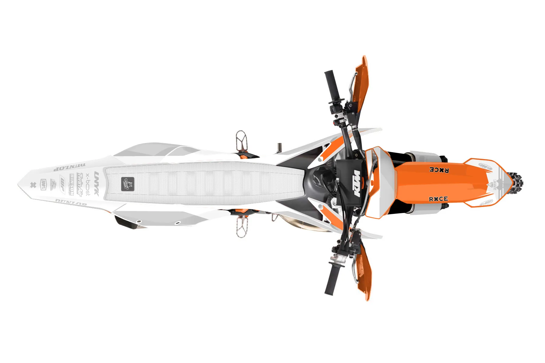 «Flying» — готовый комплект графики серии Untucked для KTM Offroad Graphic Kit KTM XC 250 2016. В комплекте: графика на бак и боковые облицовки, крылья (переднее и заднее), передний щиток, номерные таблички, защита вилки. Материал: ПВХ-винил 80 мкр с холодной ламинацией 300 мкр, общая толщина 380 мкр; покрытие глянцевое или матовое на выбор. Устойчив к UV-излучению, воде, бензину и мойке высокого давления. Клей акриловый на сольвентной основе — постоянный, для гибких пластиков. На простых поверхностях монтируется без нагрева; для сложных изгибов рекомендуем фен. Этот пресет можно заказать как есть или взять за основу в конструкторе: поменять цвета, добавить стартовый номер и свой бренд. Производство — 3–5 рабочих дней, доставка по России СДЭКом или Почтой, по СНГ — курьерскими службами.