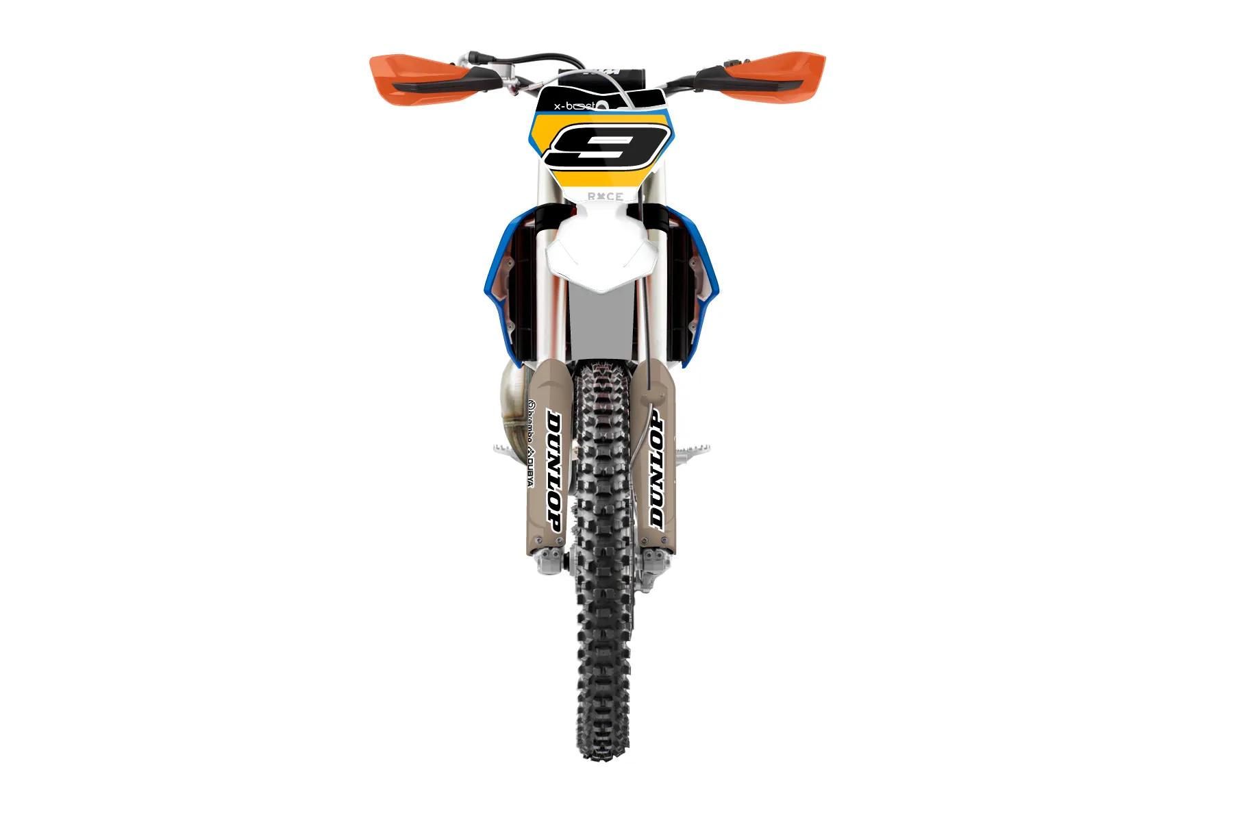 «All-Star» — готовый комплект графики серии Flow для KTM Offroad Graphic Kit KTM XC 250 2019. В комплекте: графика на бак и боковые облицовки, крылья (переднее и заднее), передний щиток, номерные таблички, защита вилки. Материал: ПВХ-винил 80 мкр с холодной ламинацией 300 мкр, общая толщина 380 мкр; покрытие глянцевое или матовое на выбор. Устойчив к UV-излучению, воде, бензину и мойке высокого давления. Клей акриловый на сольвентной основе — постоянный, для гибких пластиков. На простых поверхностях монтируется без нагрева; для сложных изгибов рекомендуем фен. Этот пресет можно заказать как есть или взять за основу в конструкторе: поменять цвета, добавить стартовый номер и свой бренд. Производство — 3–5 рабочих дней, доставка по России СДЭКом или Почтой, по СНГ — курьерскими службами.