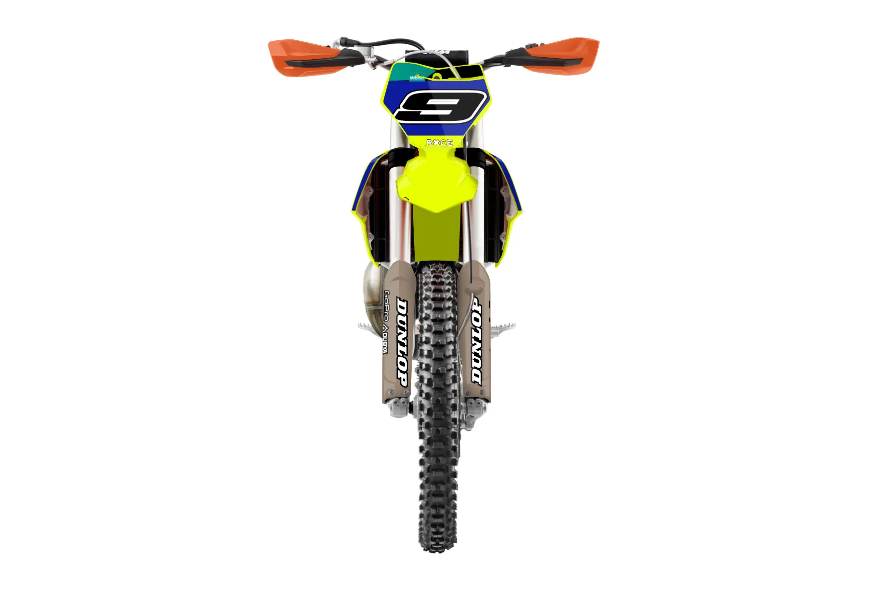 «Brilliant Neon» — готовый комплект графики серии Flow для KTM Offroad Graphic Kit KTM XC 250 2019. В комплекте: графика на бак и боковые облицовки, крылья (переднее и заднее), передний щиток, номерные таблички, защита вилки. Материал: ПВХ-винил 80 мкр с холодной ламинацией 300 мкр, общая толщина 380 мкр; покрытие глянцевое или матовое на выбор. Устойчив к UV-излучению, воде, бензину и мойке высокого давления. Клей акриловый на сольвентной основе — постоянный, для гибких пластиков. На простых поверхностях монтируется без нагрева; для сложных изгибов рекомендуем фен. Этот пресет можно заказать как есть или взять за основу в конструкторе: поменять цвета, добавить стартовый номер и свой бренд. Производство — 3–5 рабочих дней, доставка по России СДЭКом или Почтой, по СНГ — курьерскими службами.
